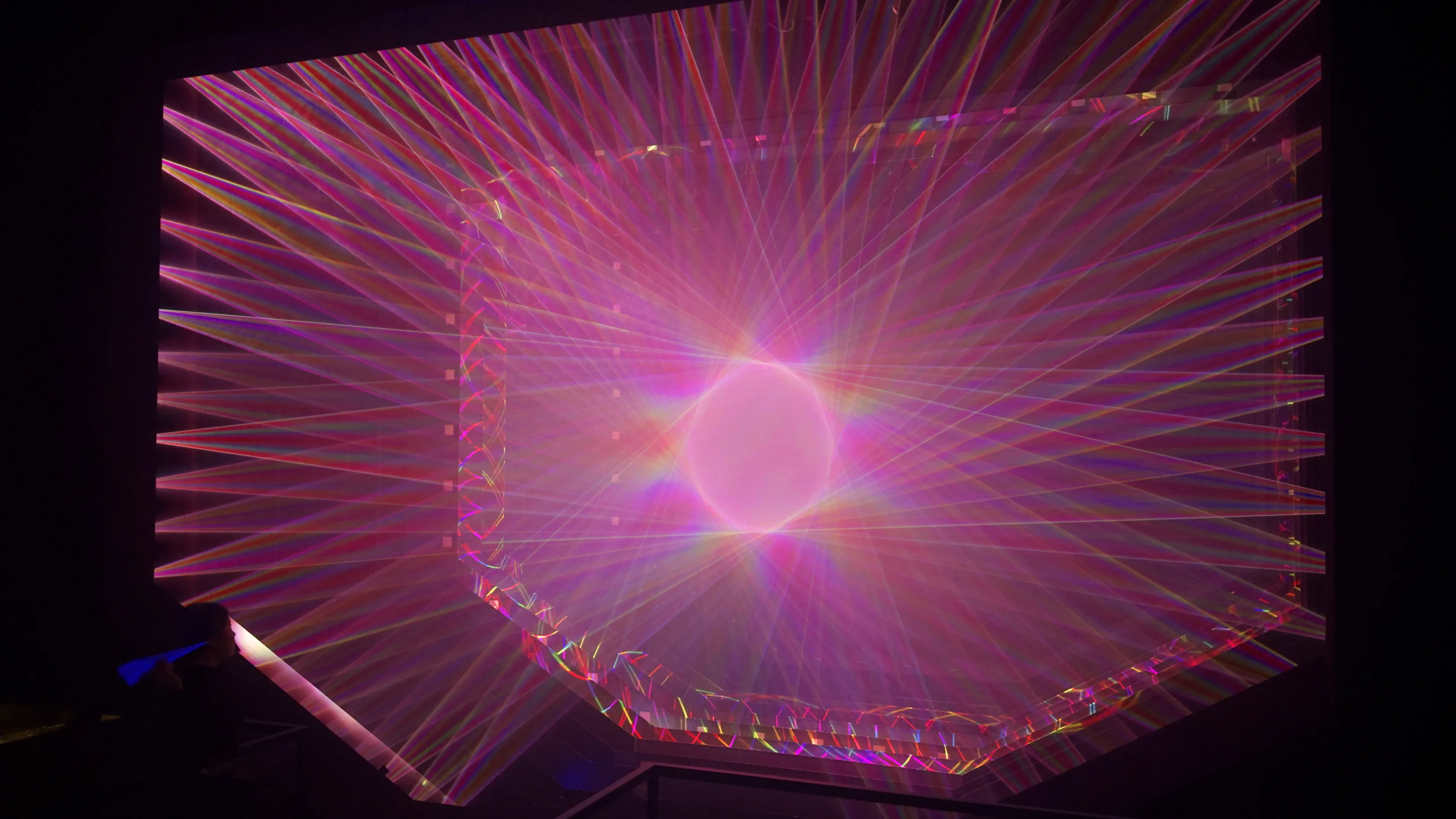 A sculpture composed of an order formed by a collection of light that flows continuously from the outside to the inside and from the inside to the outside.