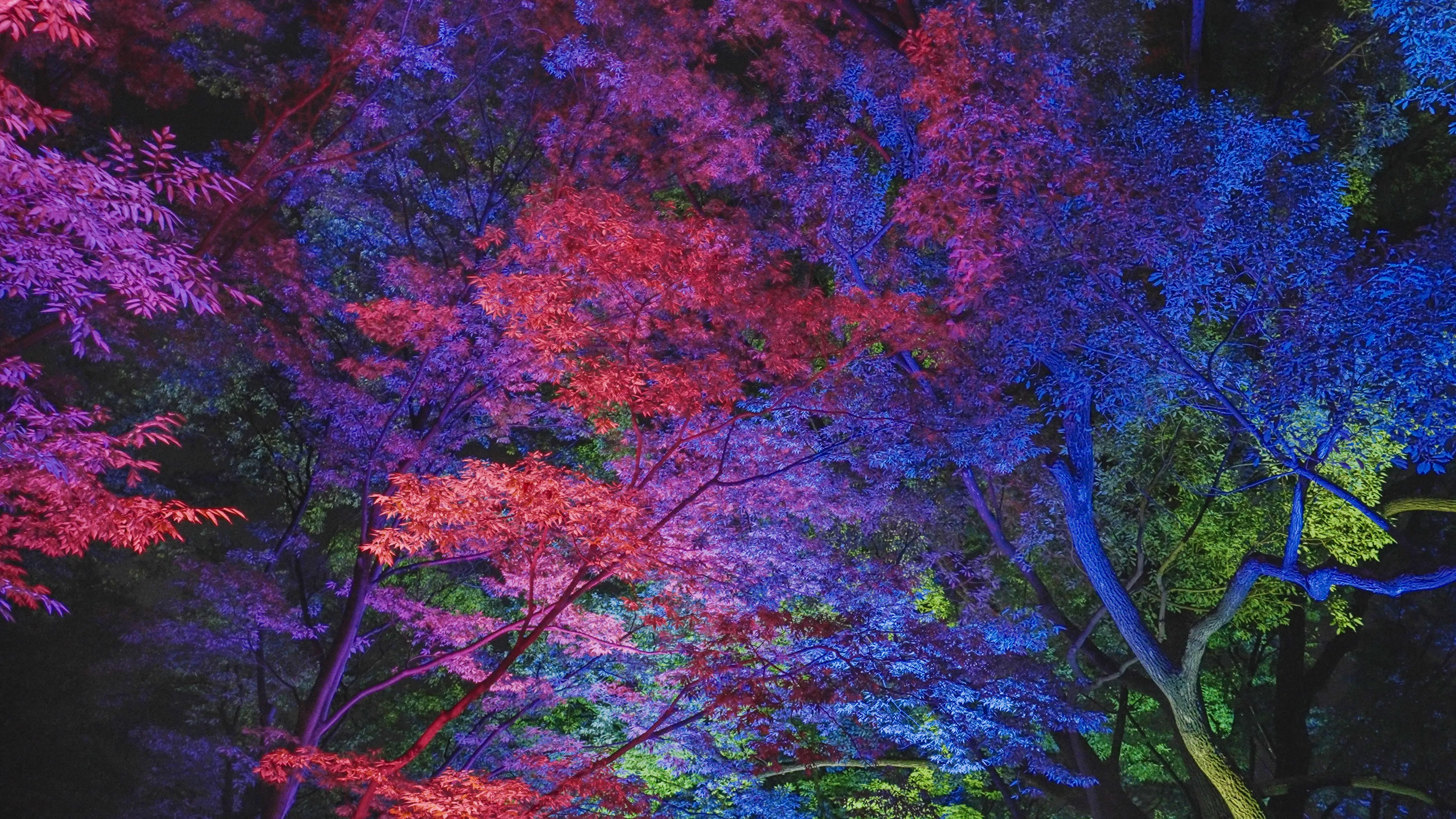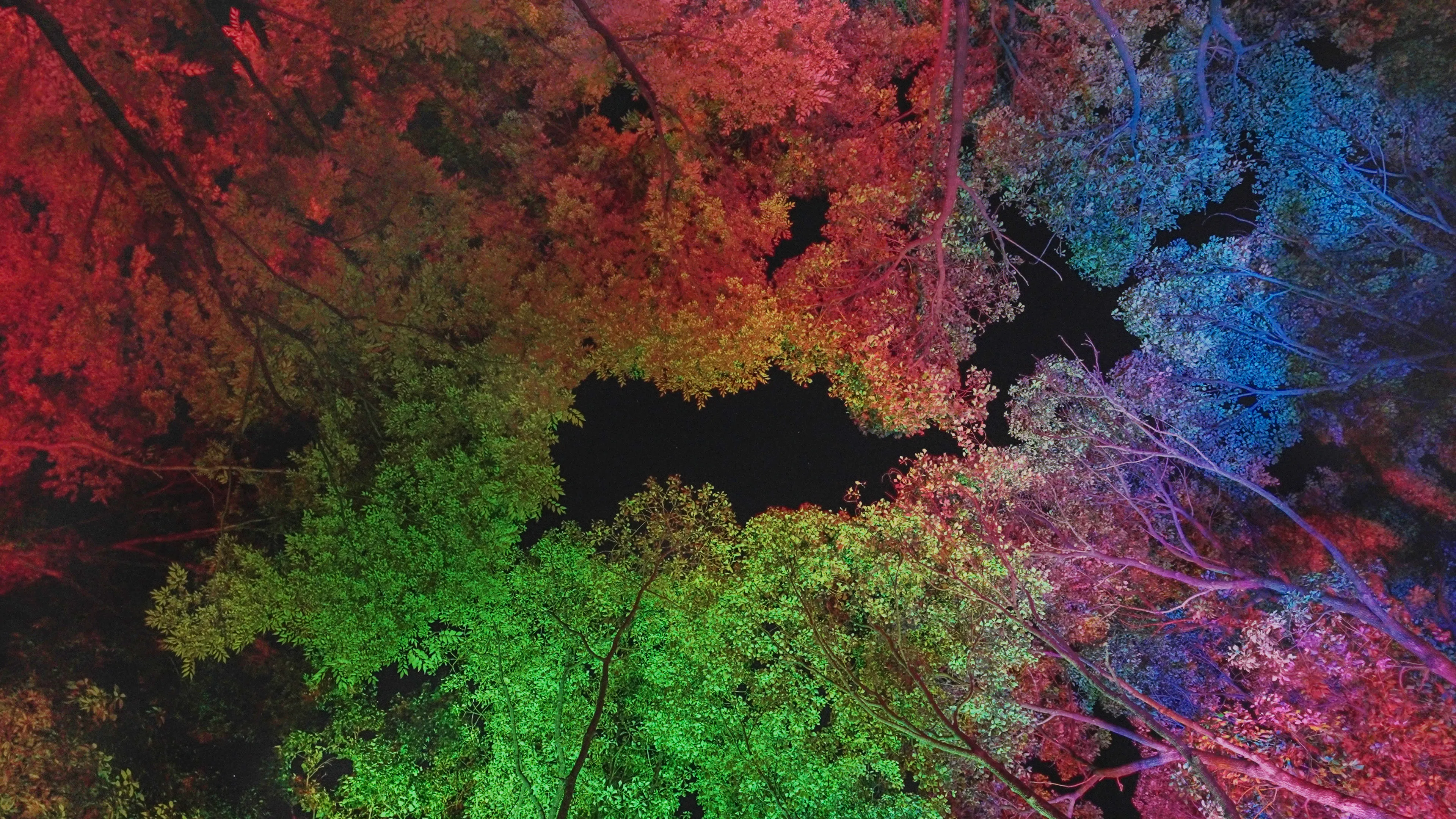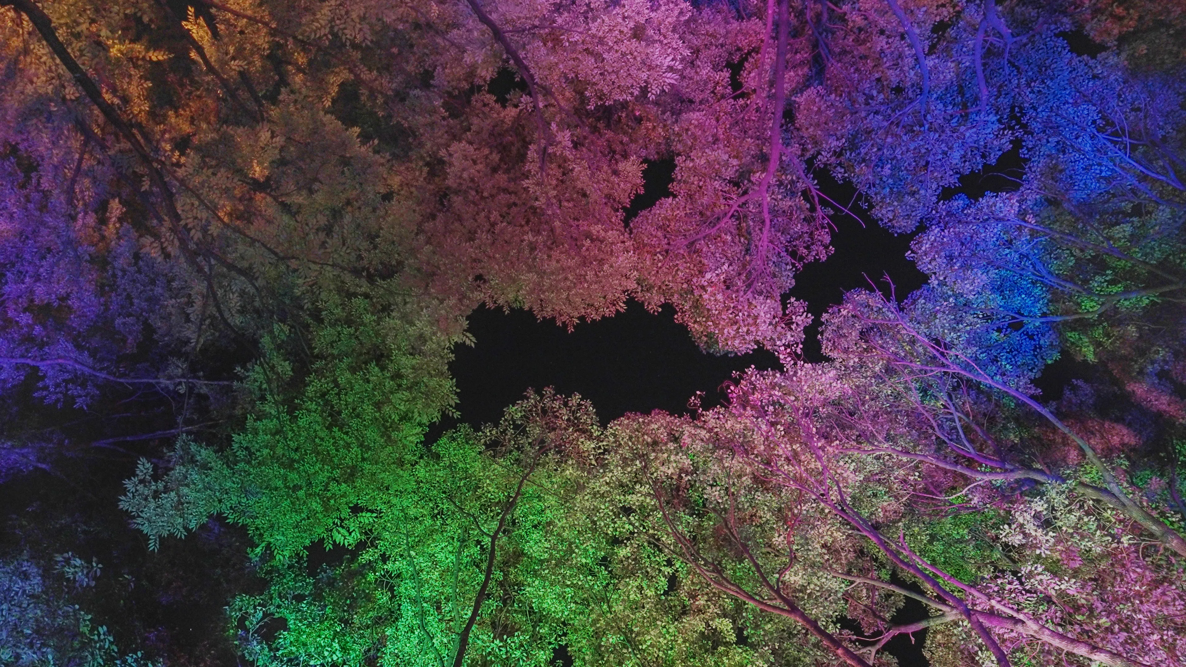 When people or animals pass close to the trees, the trees shine brightly and produce a tone. That light and tone then spreads out continuously, one by one, to the surrounding trees.