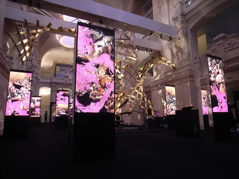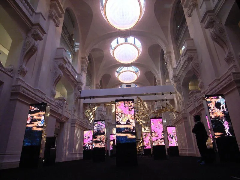 teamLab, 2008, Digital Installation, LED, 12 channels, 12 min 28 sec (loop), H: 2700 mm, Sound: Haleo Shiiya (Sound Director) + Shigetake Ao (Compose & Mixing & Recording) + Keiichiro Shibuya (The third term music) + Fuyuki Yamakawa (Khoomei) + Shuri (Voice) + Tomoko Takeda (Shinobue) + Tetsuro Naito (Wadaiko) + Koyasan Shingon Buddhism Sohonzan Kongobuji, Koyasan Wakayama (Field REC)