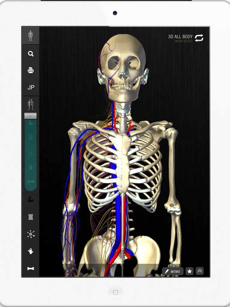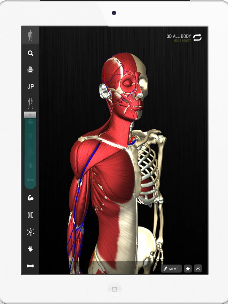 teamLabBody (beta) uses this huge amount of data to visualize the muscles, bones, nerves, vessels, and joints in the whole body, and has shown heretofore unknown bone joints in high precision, showing the bones and bone movement and combined with 3D motion interactivity.