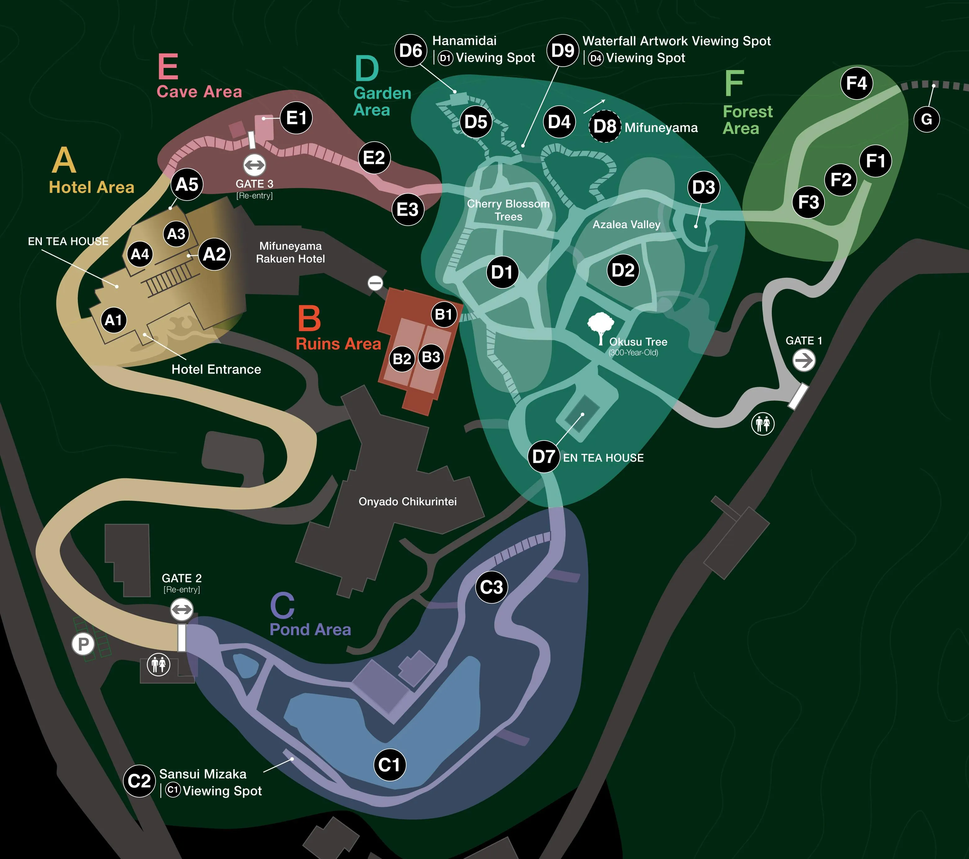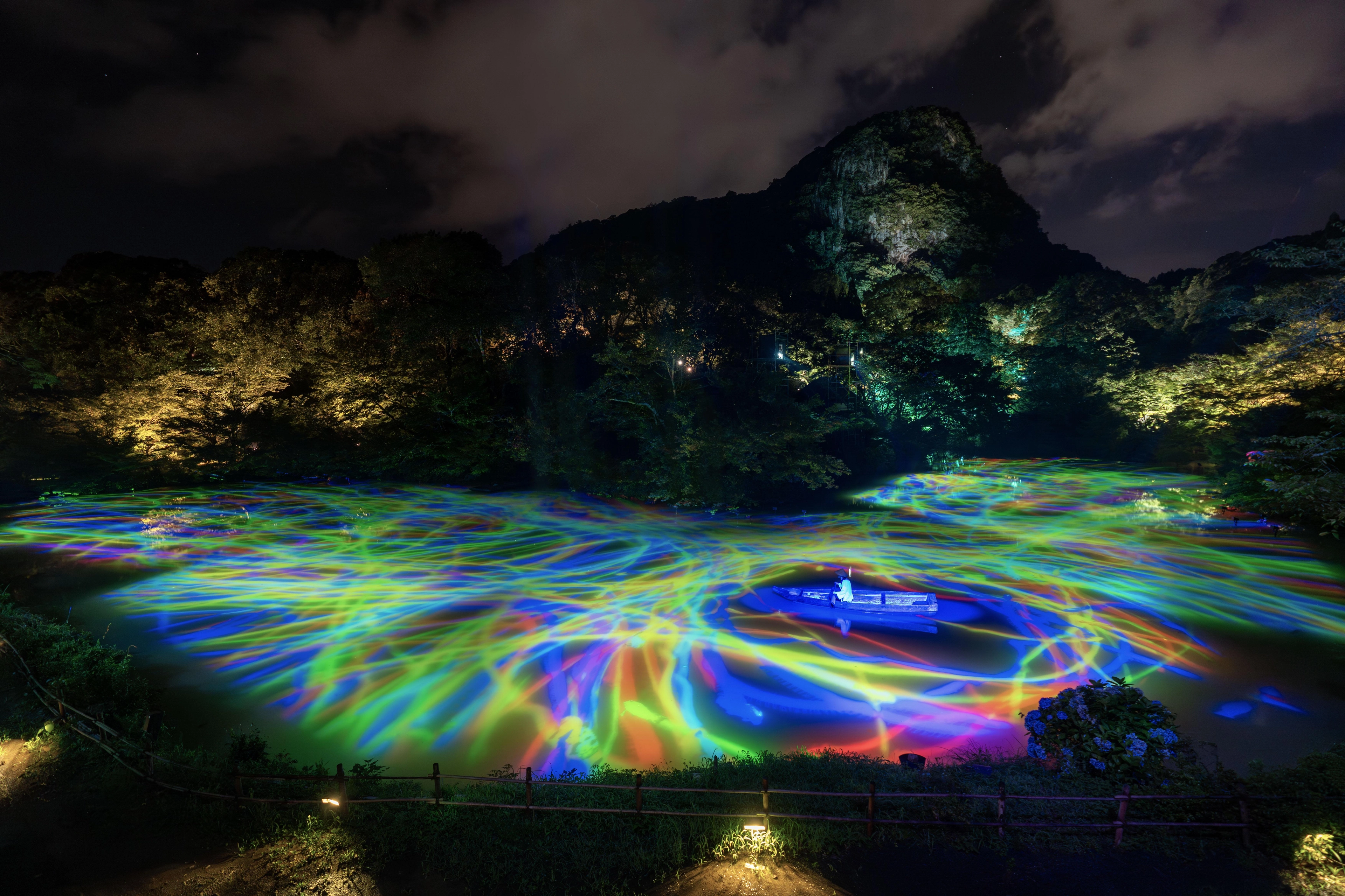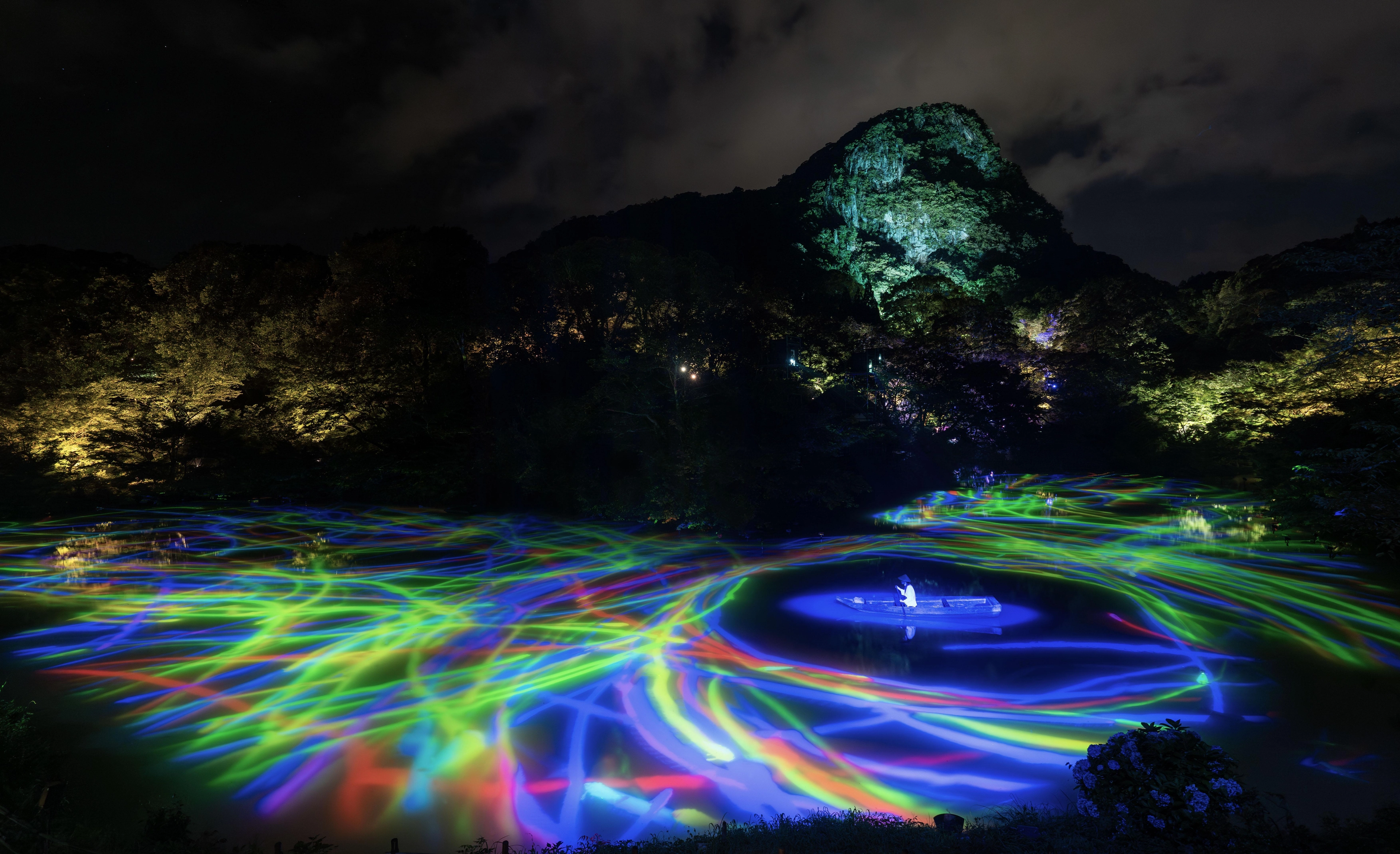 Combo tickets for a day trip to Rakan Bath and “teamLab: A Forest Where Gods Live - GC” are available, allowing visitors not staying at the Mifuneyama Rakuen Hotel or Onyado Chikurintei to take a sauna, then experience art in the forest. (*Reservation Required) Open your mind in a sauna surrounded by 3-million-year-old nature and 1,300 years’ worth of heritage. Reconnect with the continuity of the world and of time in 500,000 square meters of art spread across historic forests and gardens.