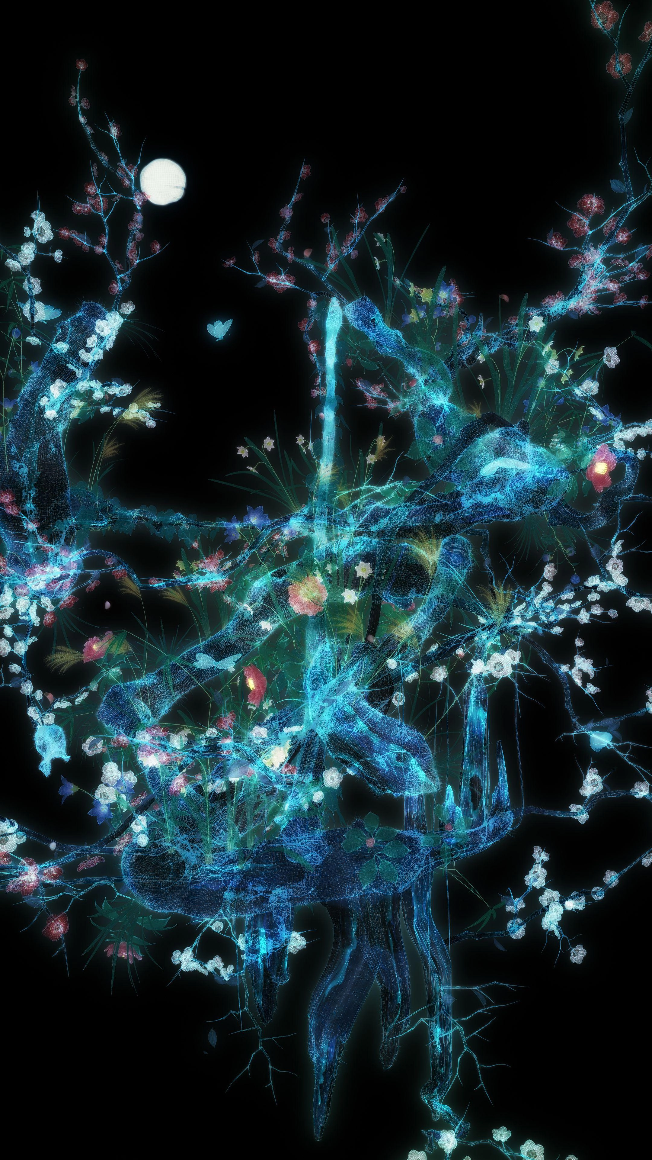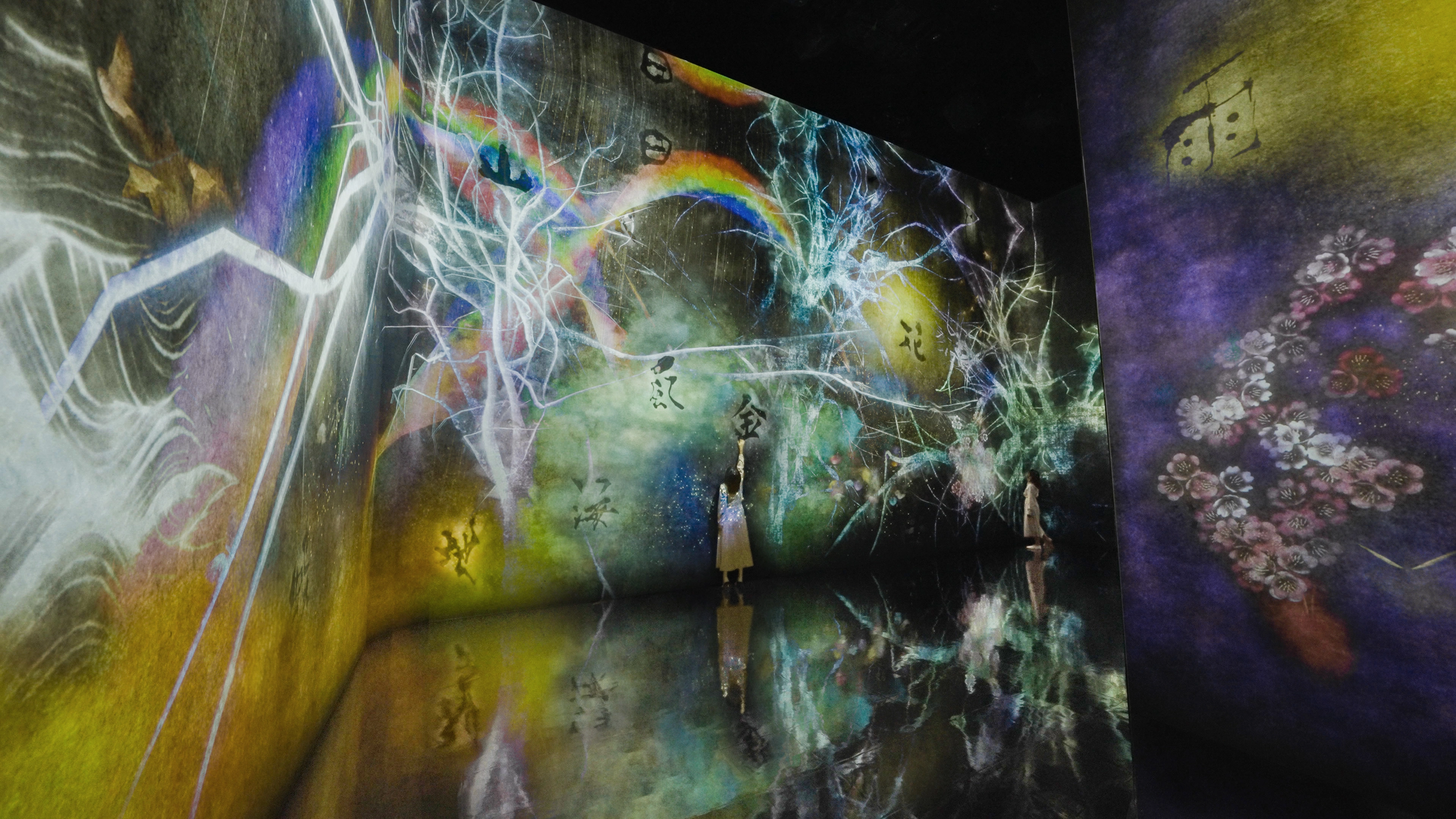 teamLab does not believe in thick and heavy materials created by modern society, nor in fixed formats, in terms of number of characters and the like. But rather, teamLab believes in mathematical algorithms that may continue on to eternity, relationships that continue to change based on other people, as well as ambiguous perspectives of time and space held by the Japanese people of ancient times. teamLab artworks have the amazing power to make us value the existence of each and every moment, each and every point, whether you are having fun moving your body, or staring intently at an image. As well as raising deep questions about the modern era, this might also be because these unique moments can make us feel a definite connection with those ancient times, as well as the future.