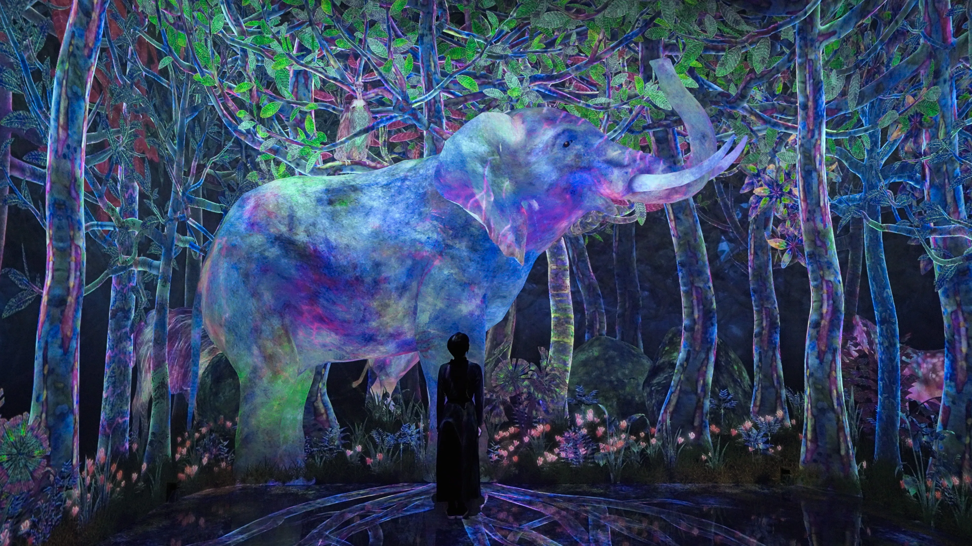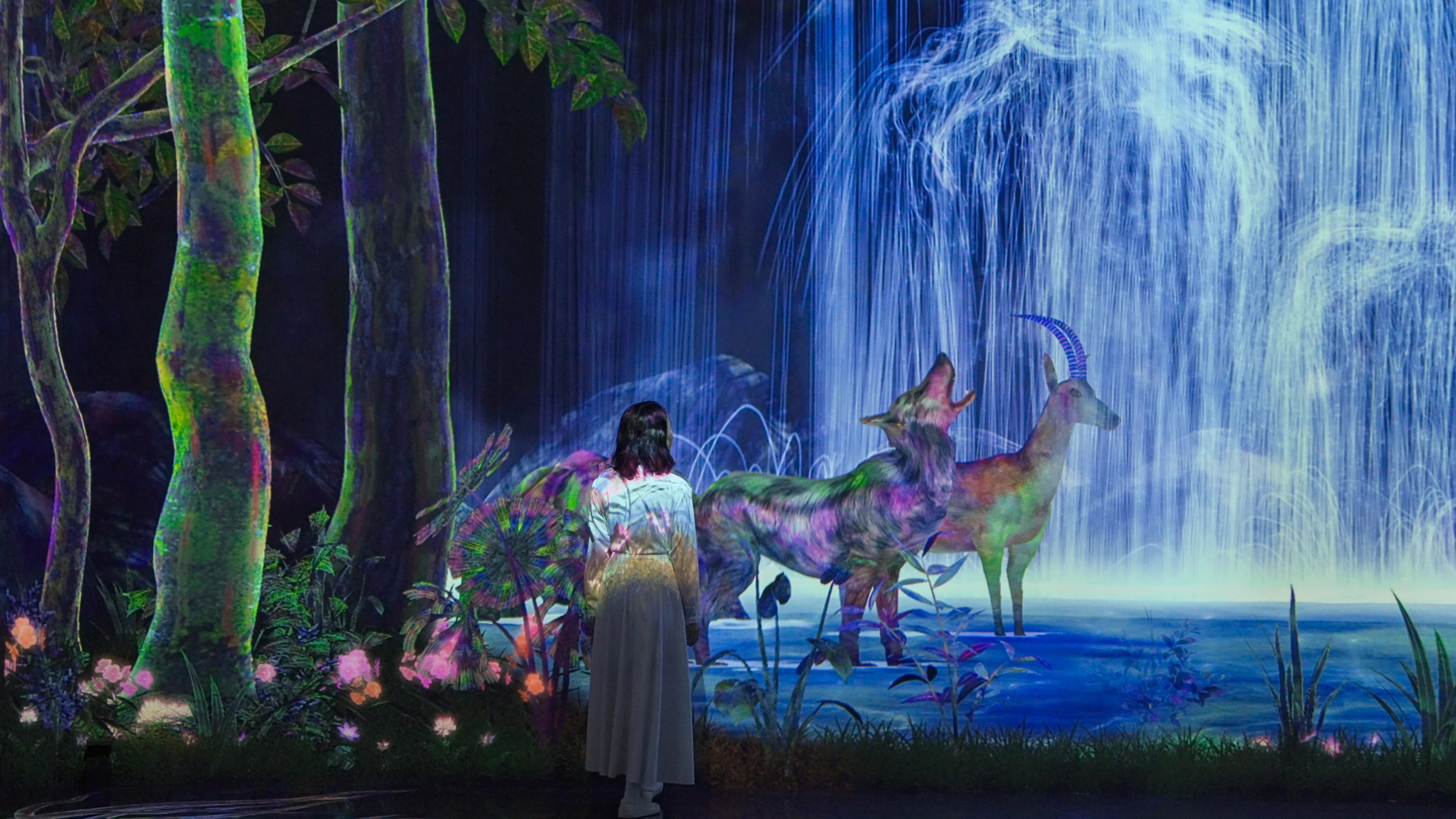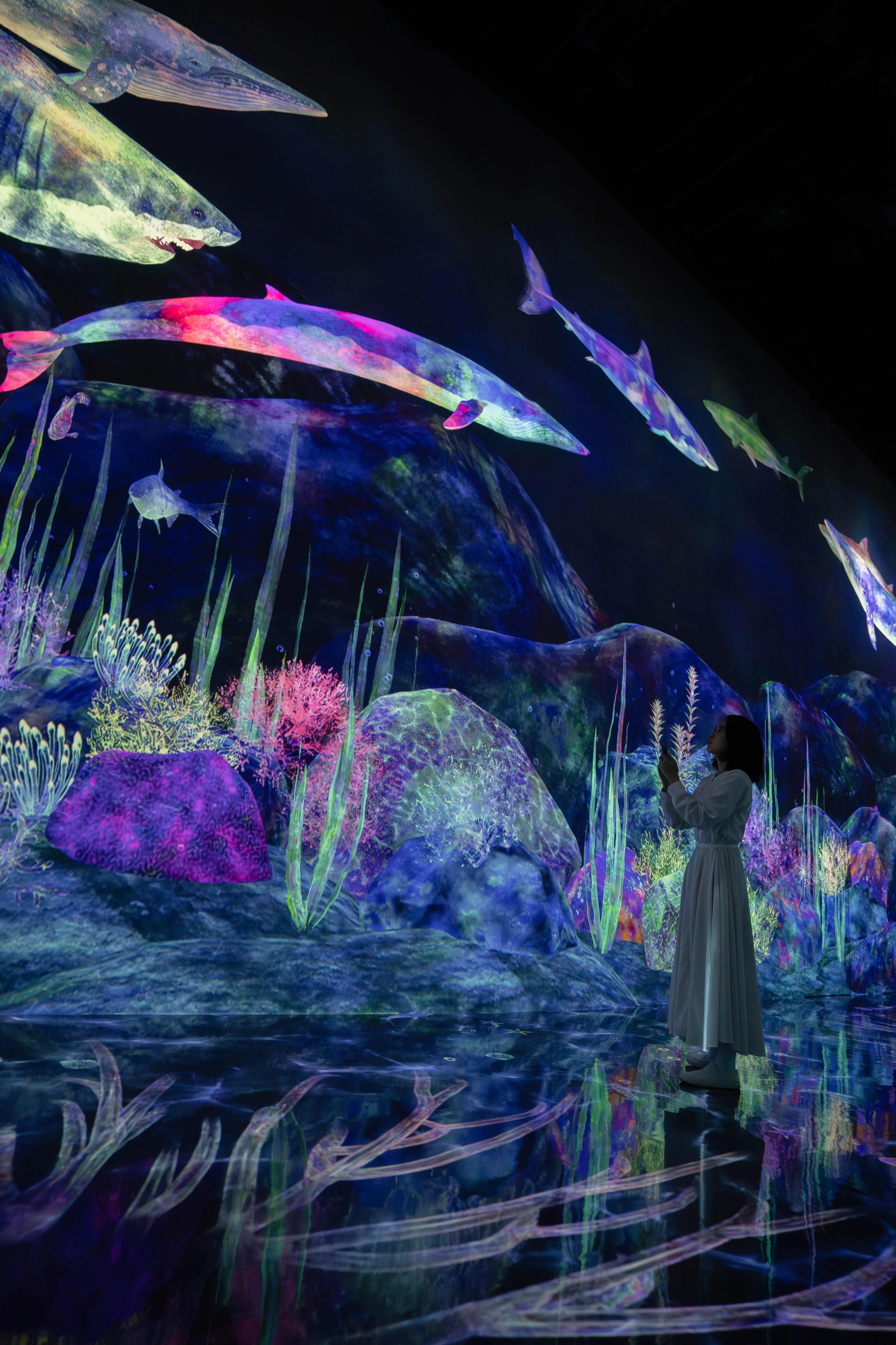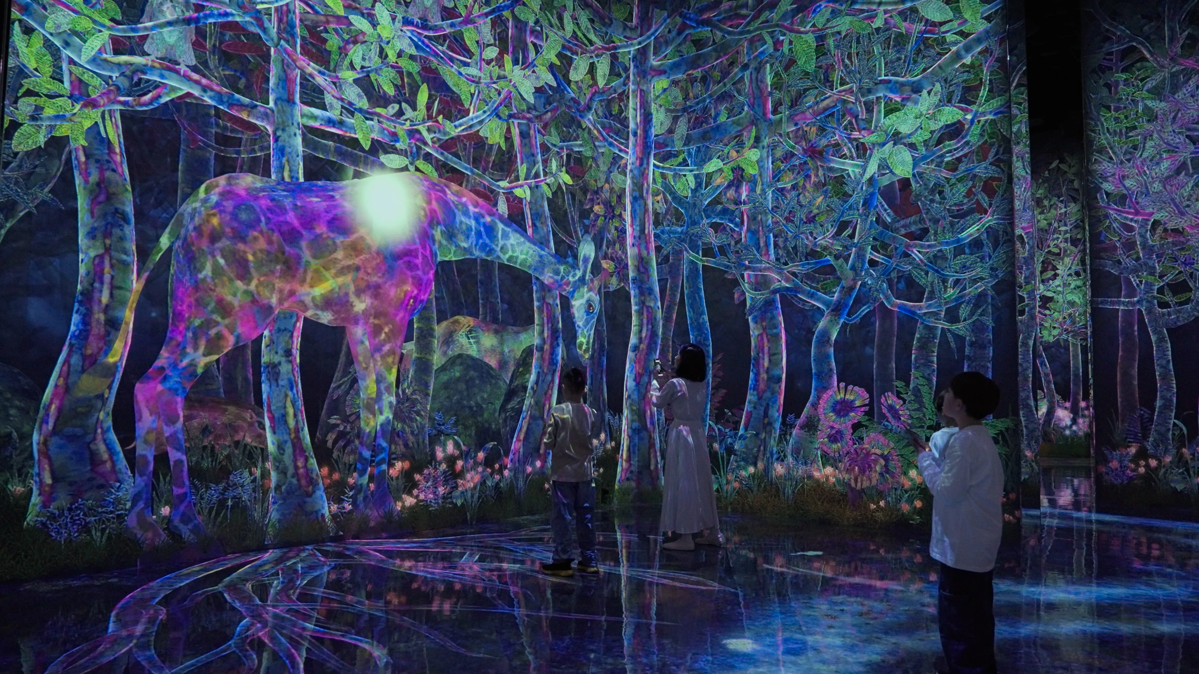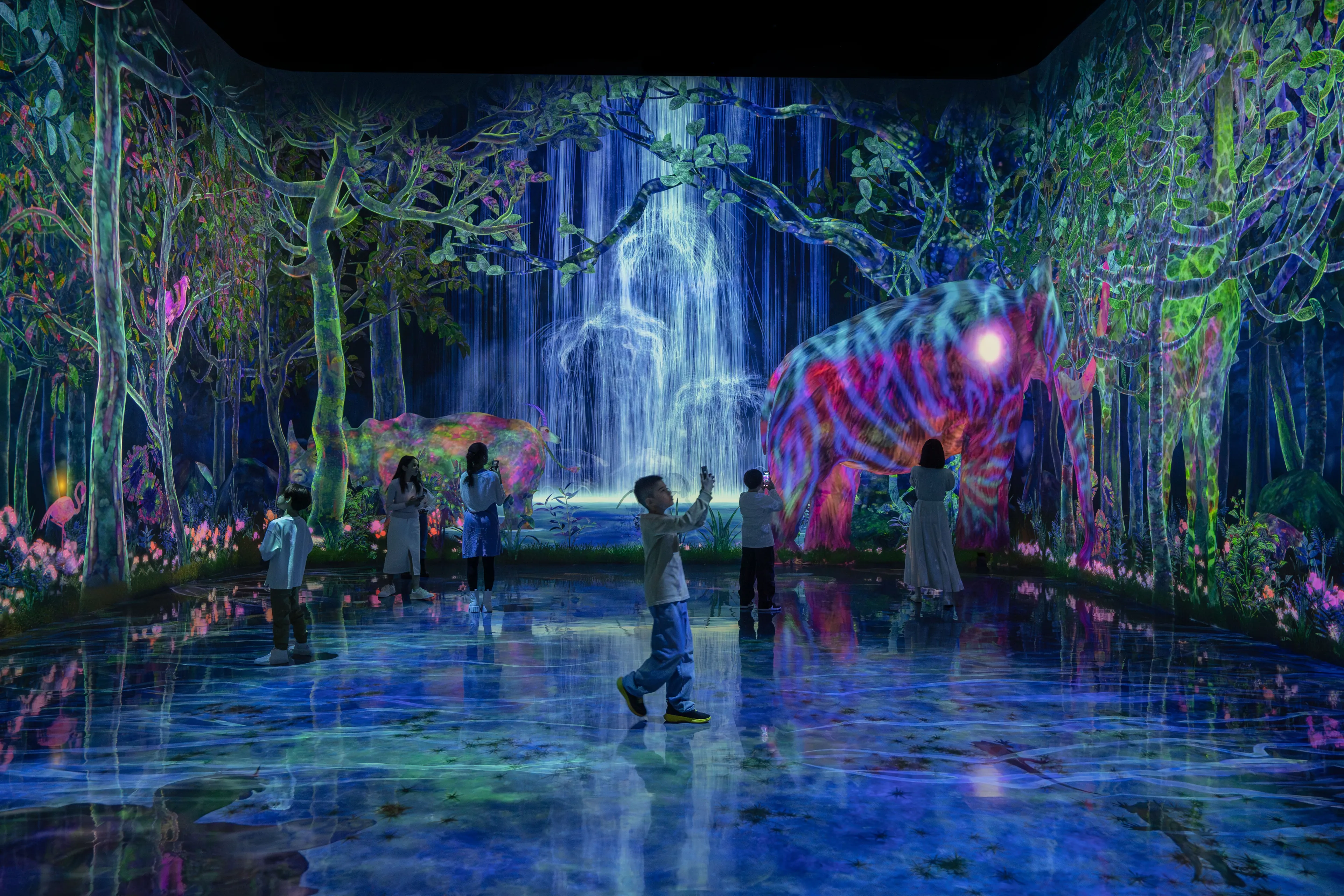 teamLab, 2025, from the series of Catching and Collecting Forest - A Whole Year per Year, 2020-, Interactive installation, Endless, Sound: Hideaki Takahashi