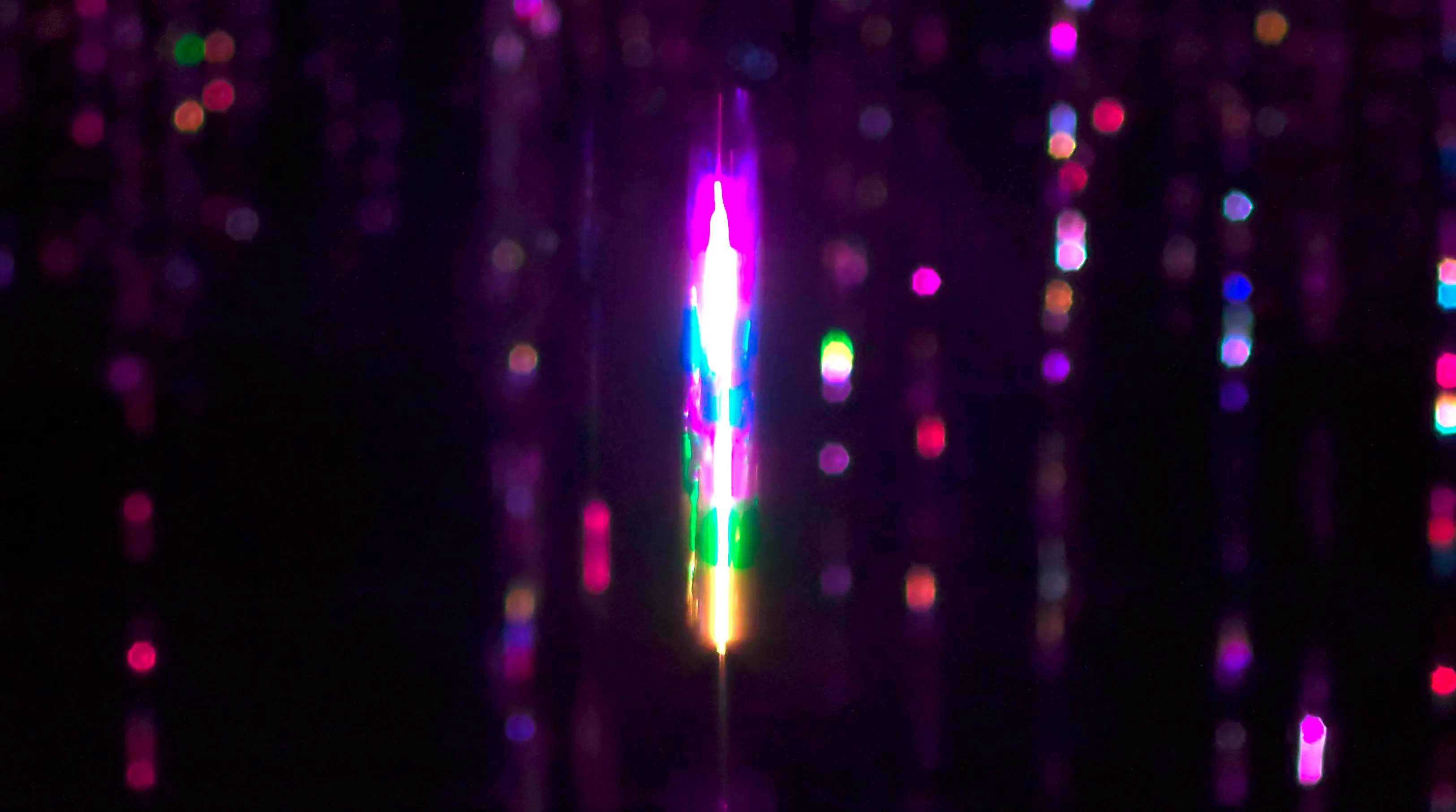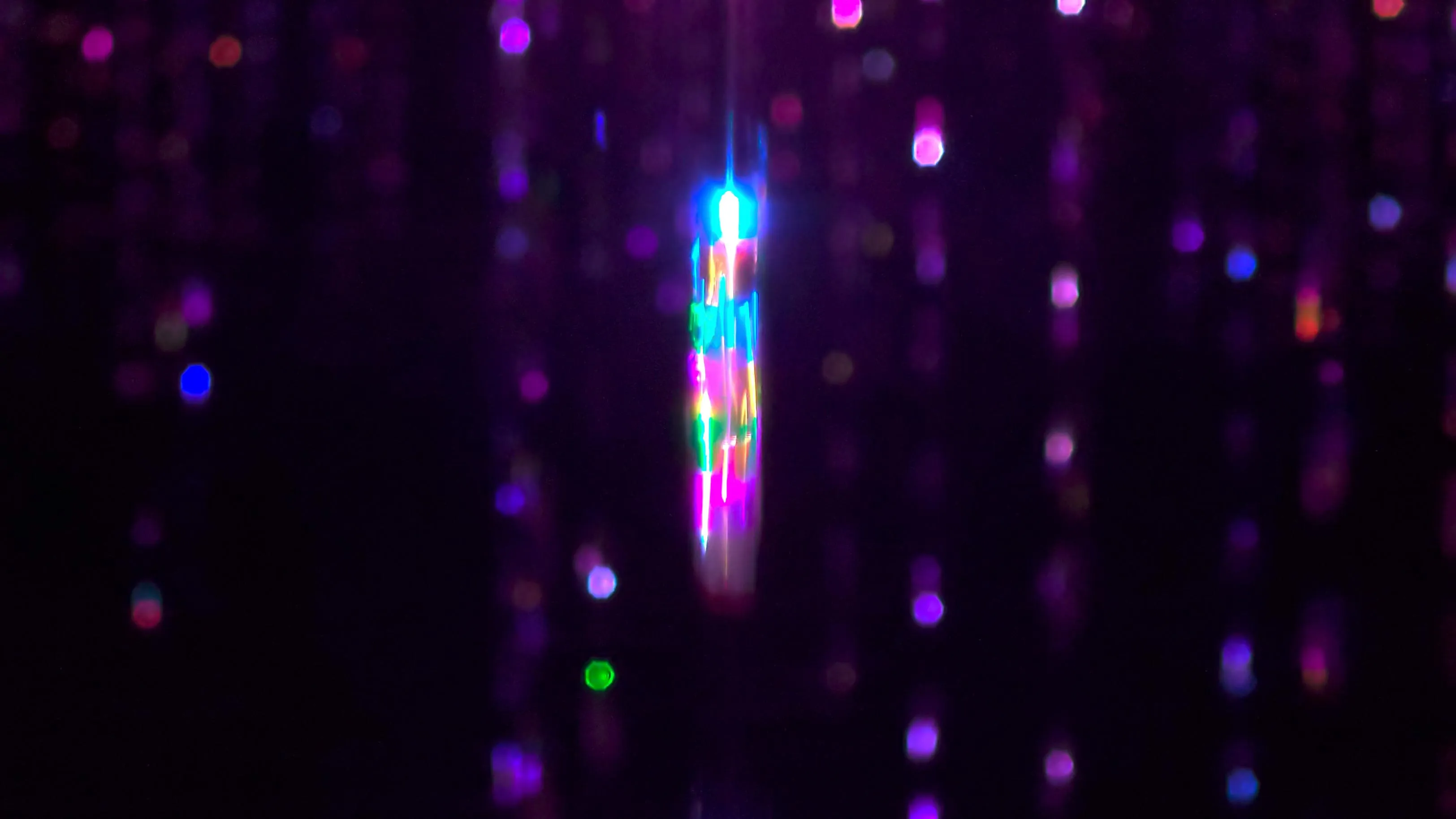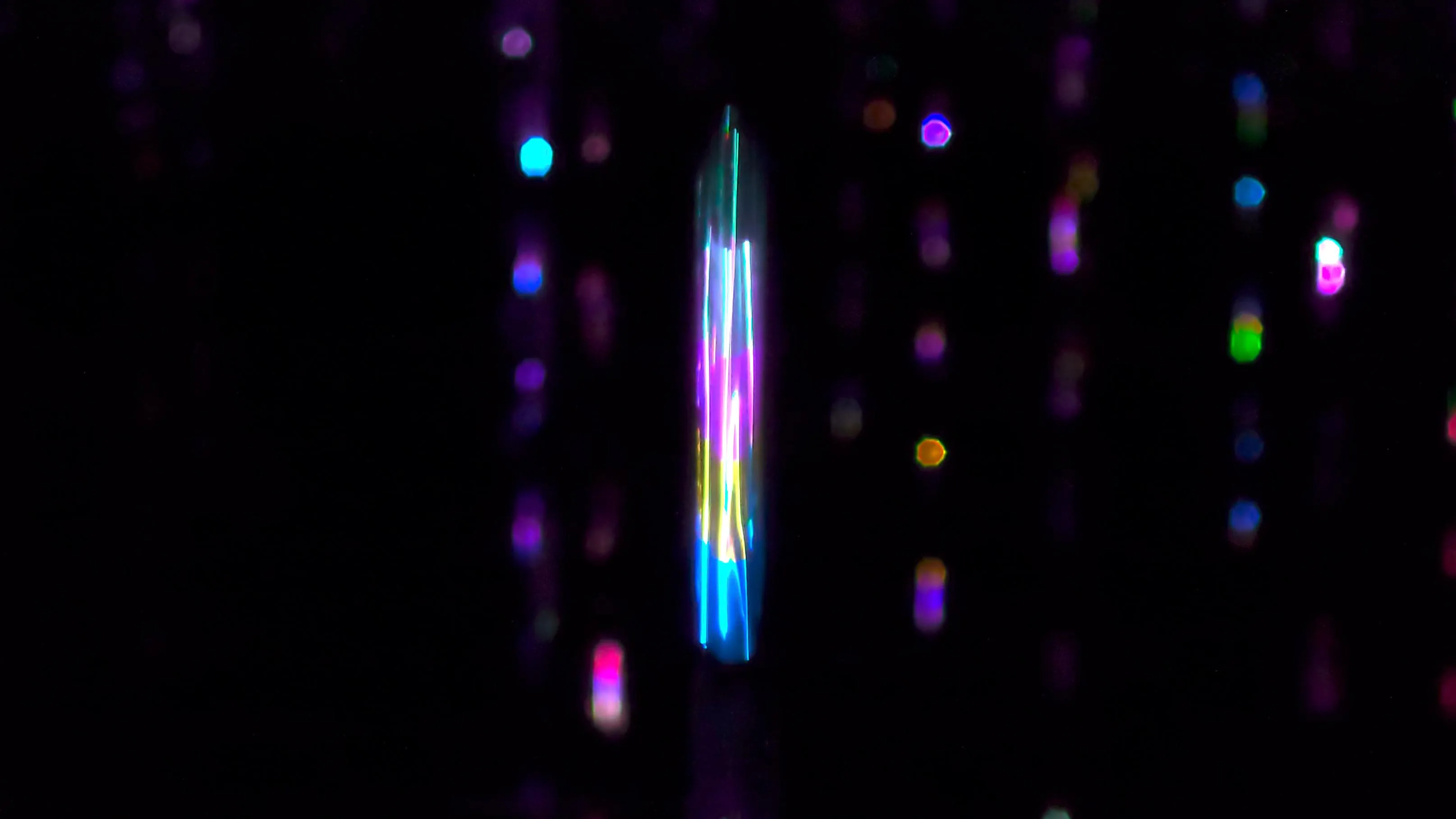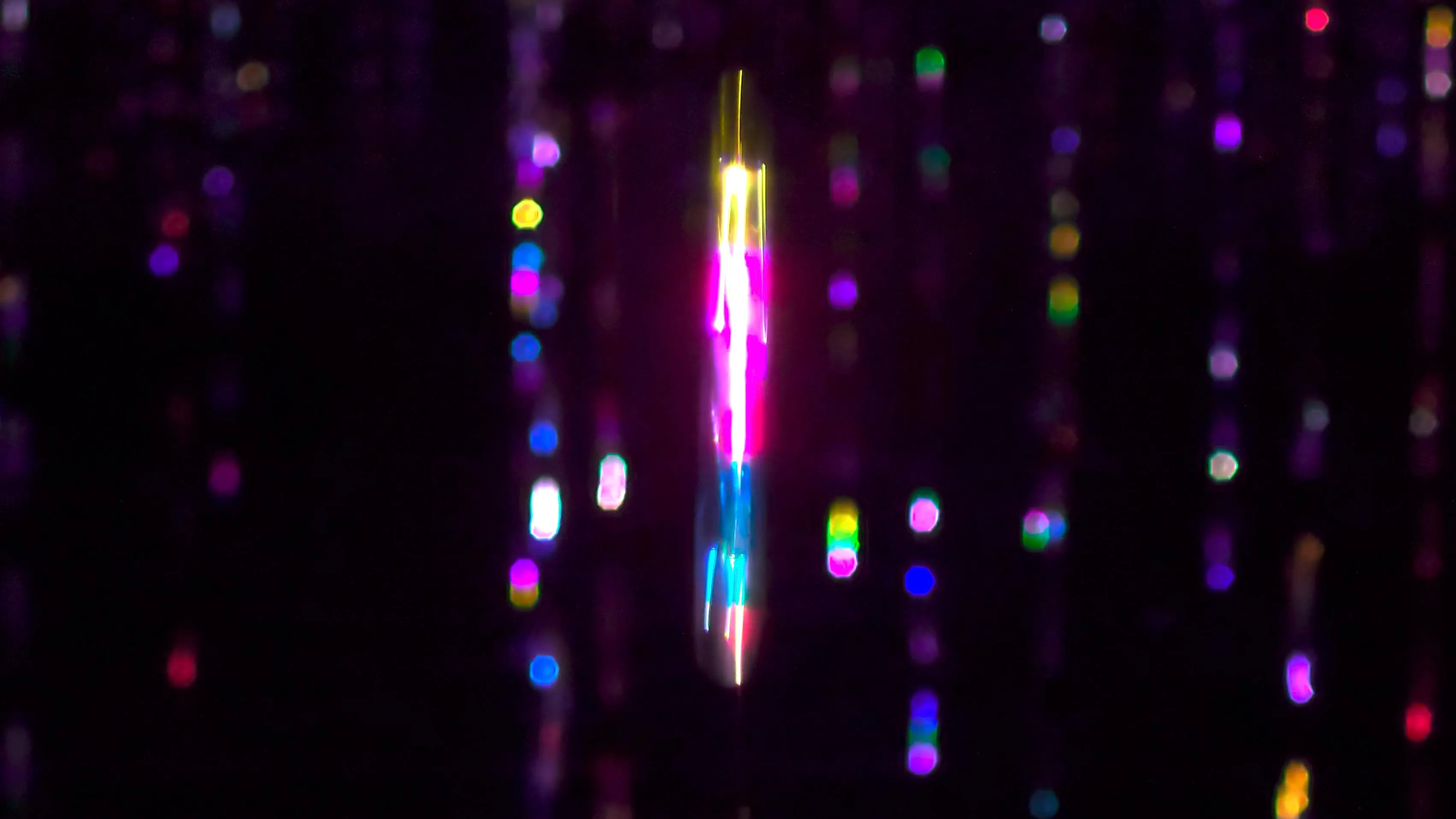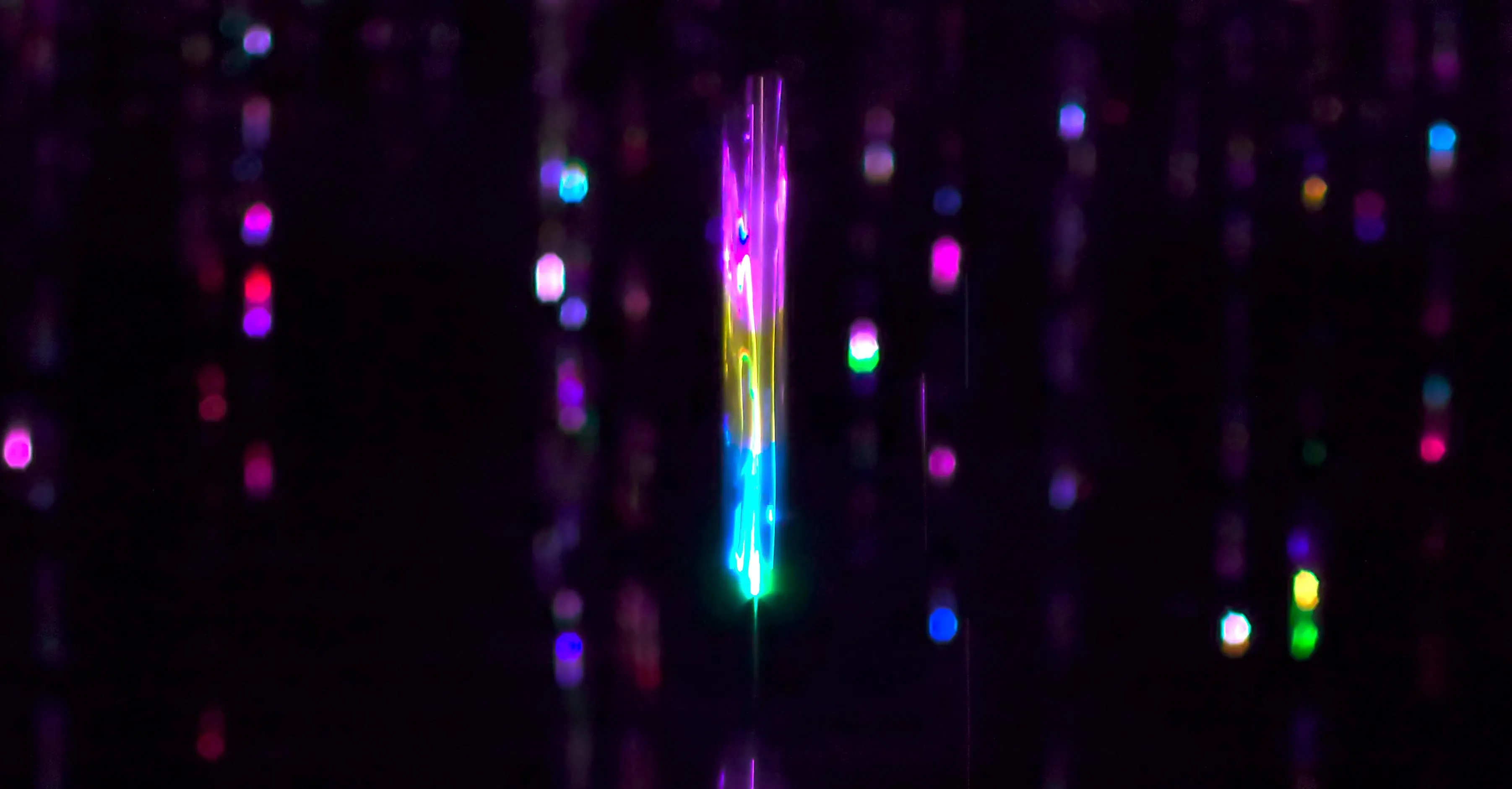 Innumerable masses of light float in the air, each one composed of multiple colors. The boundaries of each color are clearly separated as though they are solid.