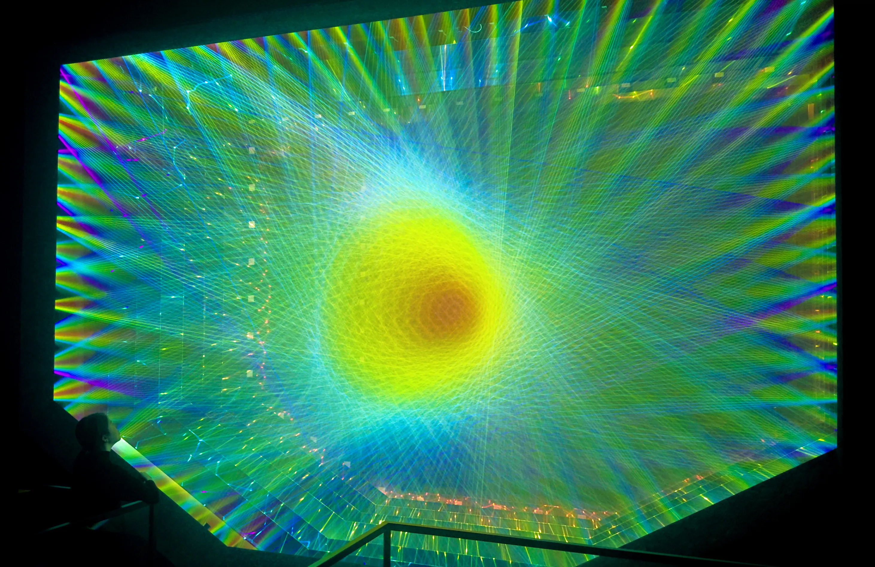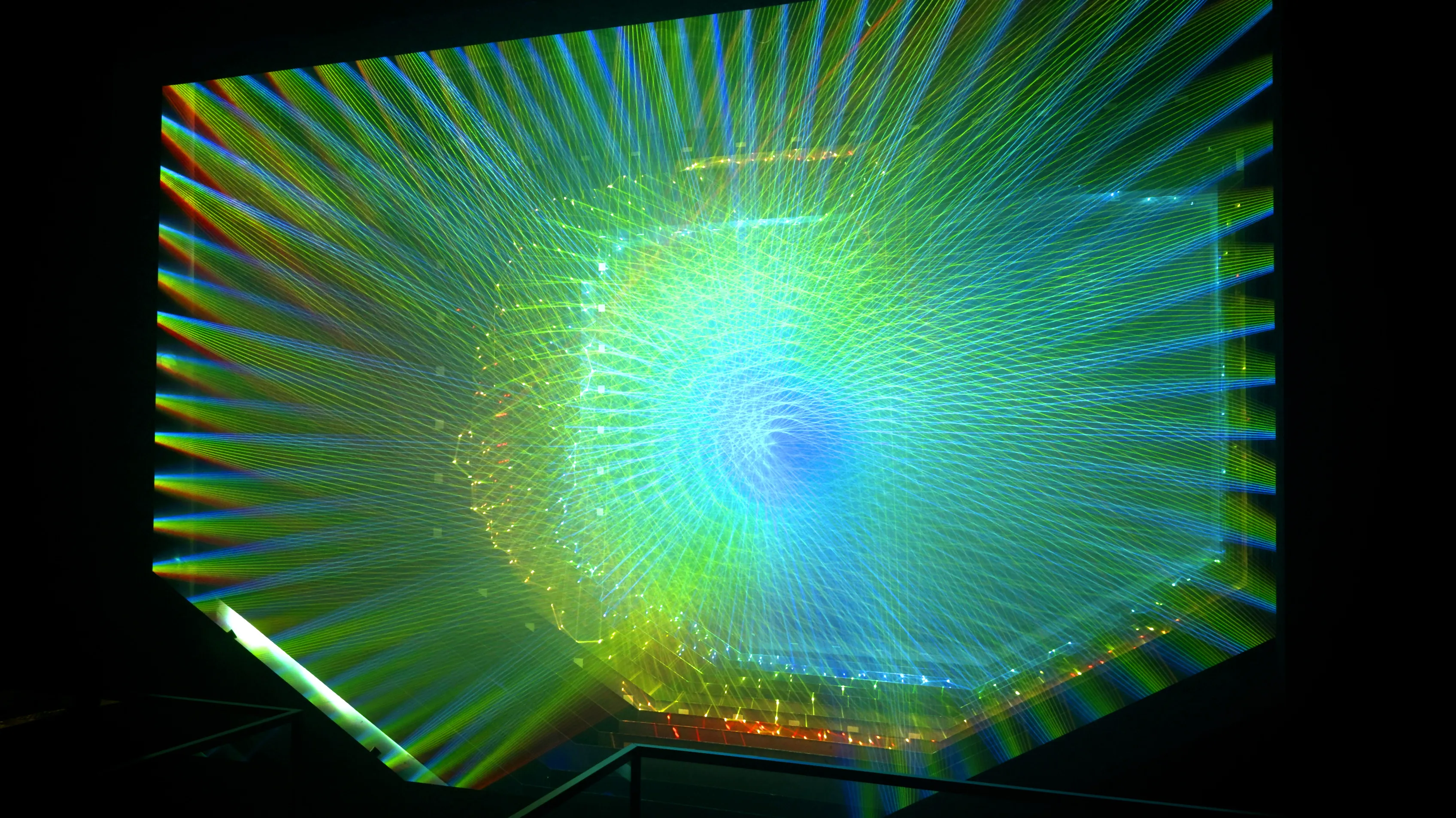 A sculpture composed of an order formed by a collection of light that flows continuously from the outside to the inside and from the inside to the outside.