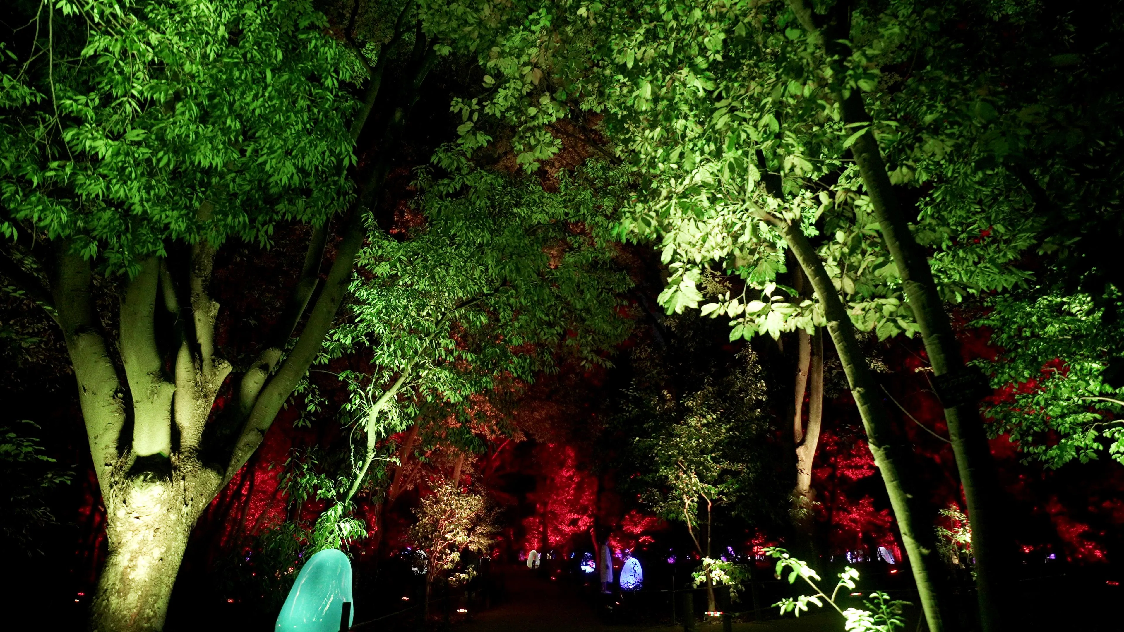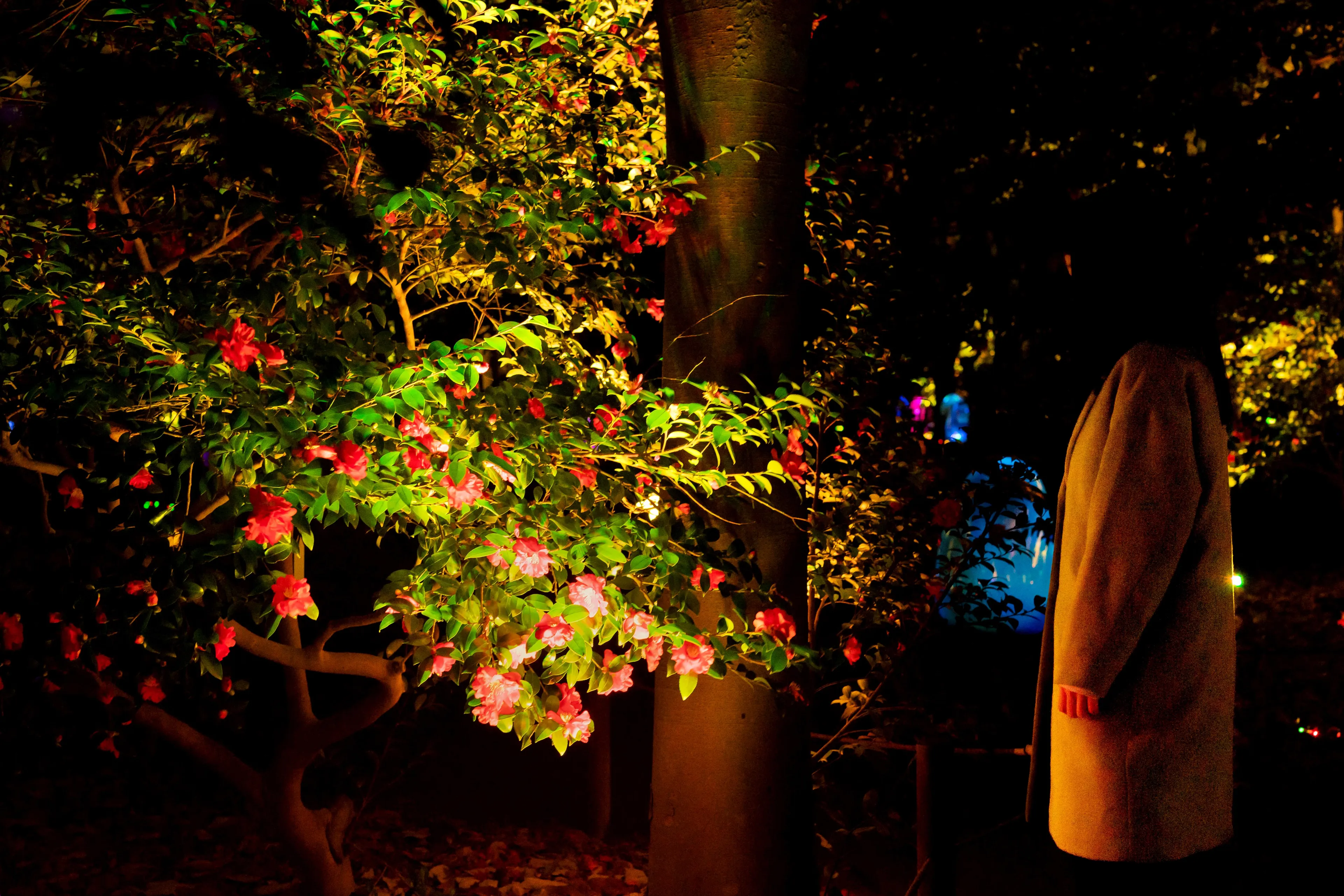 The trees in the camellia garden shine brightly. The light of each tree is autonomous, blinking slowly.