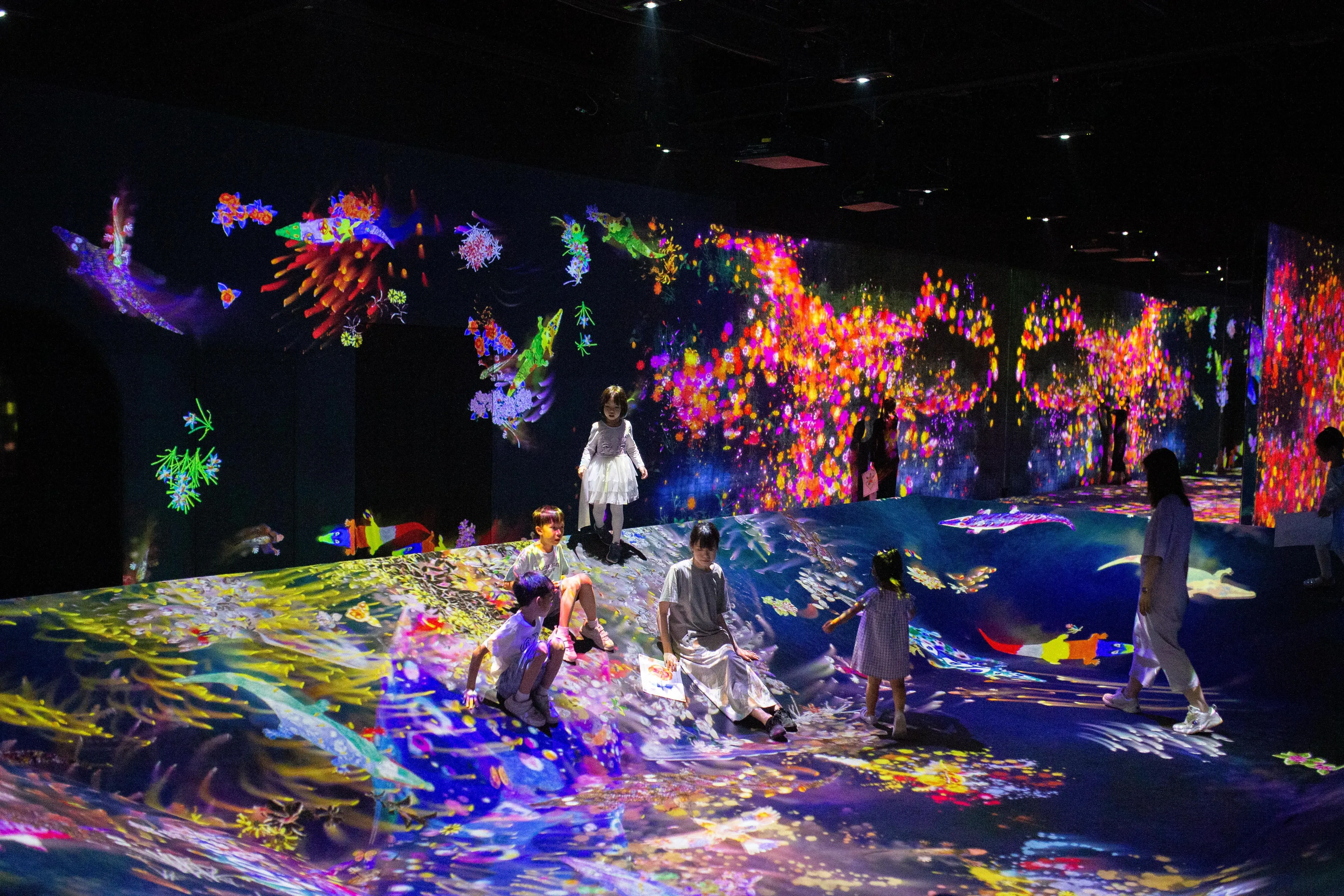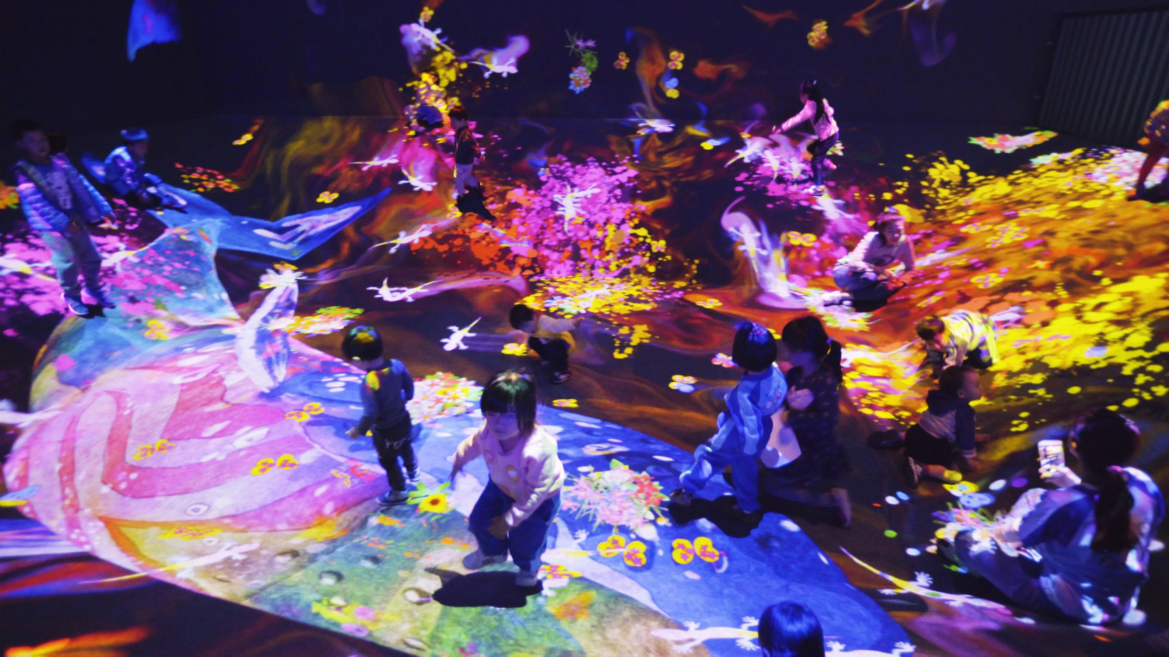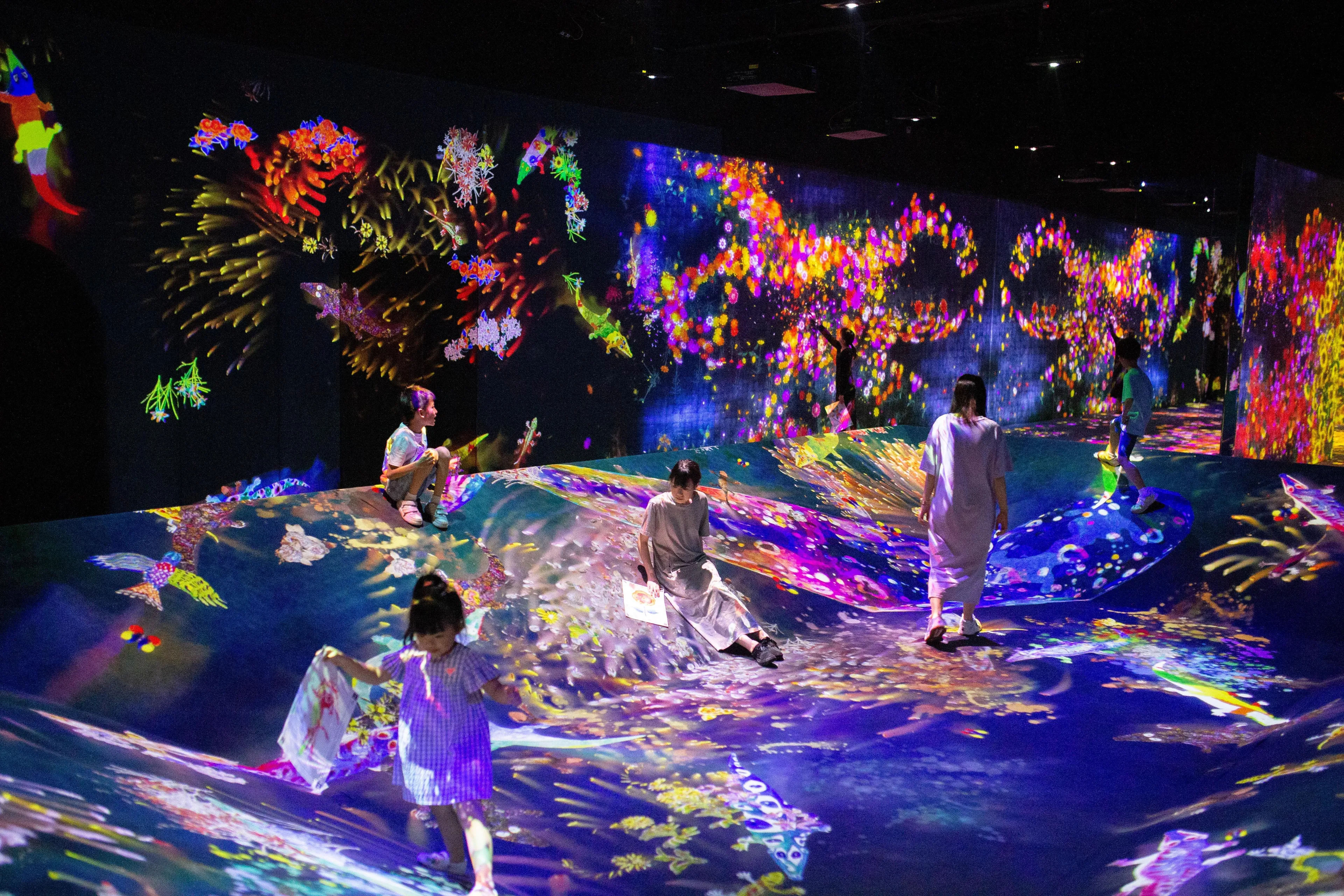 teamLab, 2016-, Interactive Digital Installation, Sound: Hideaki Takahashi