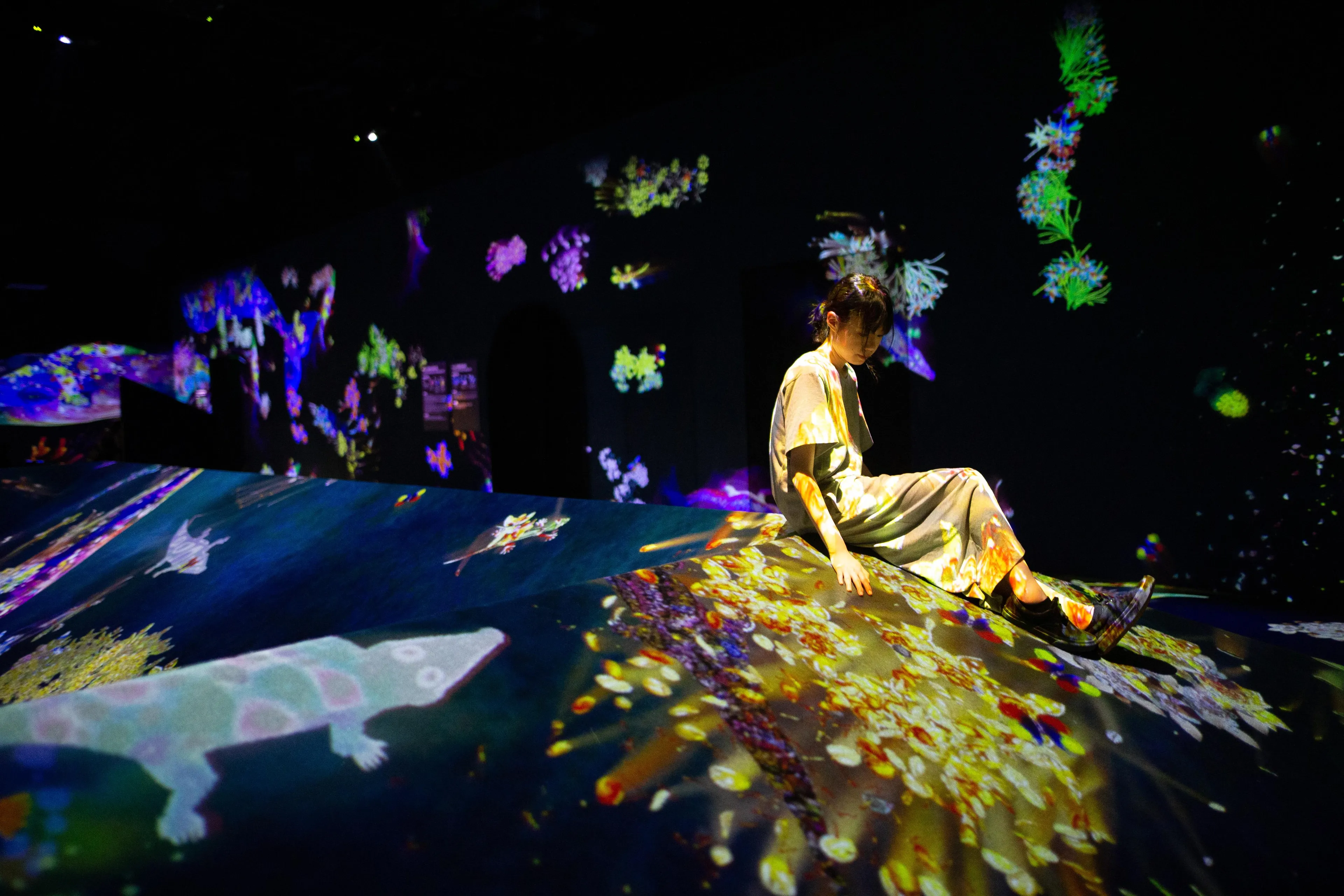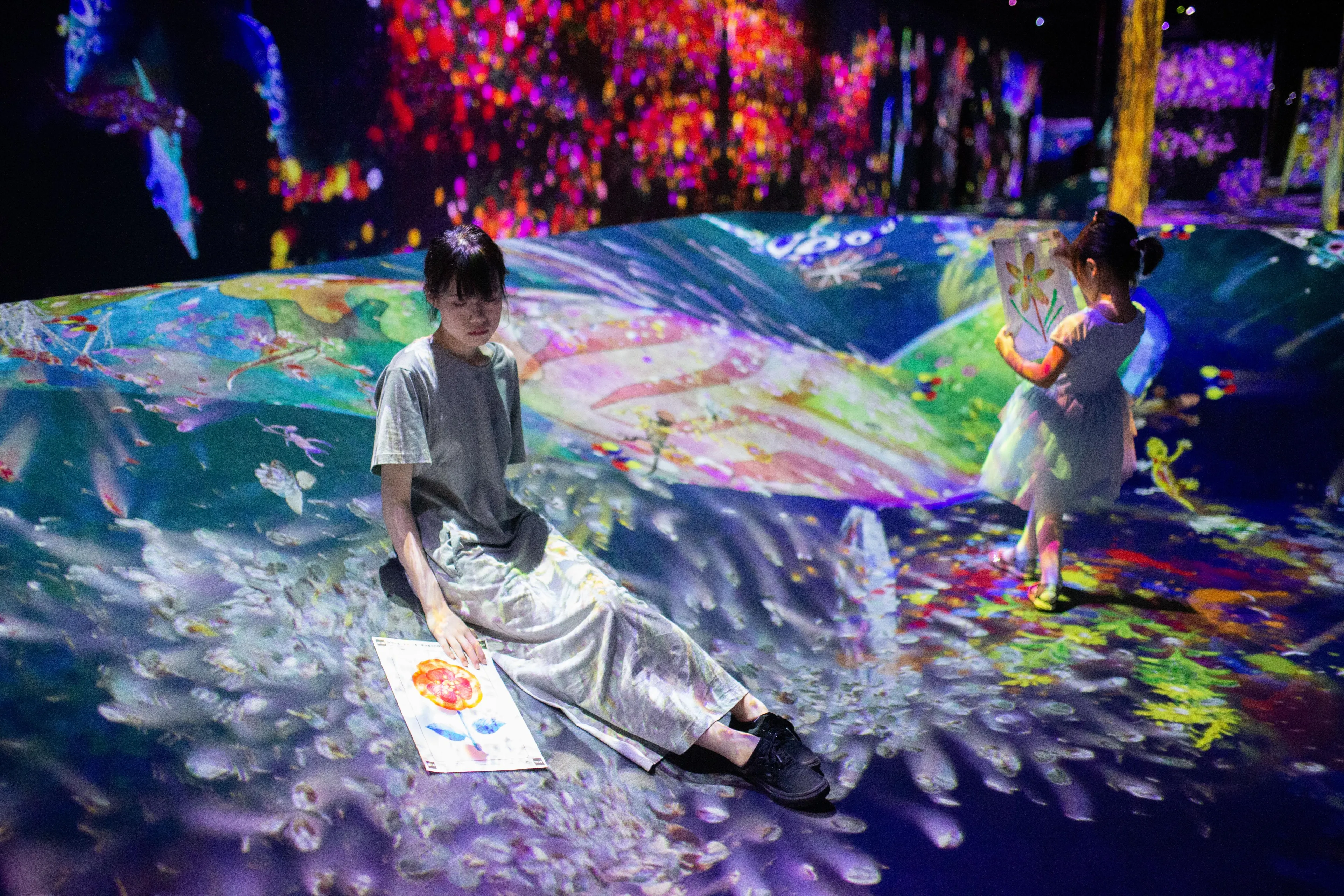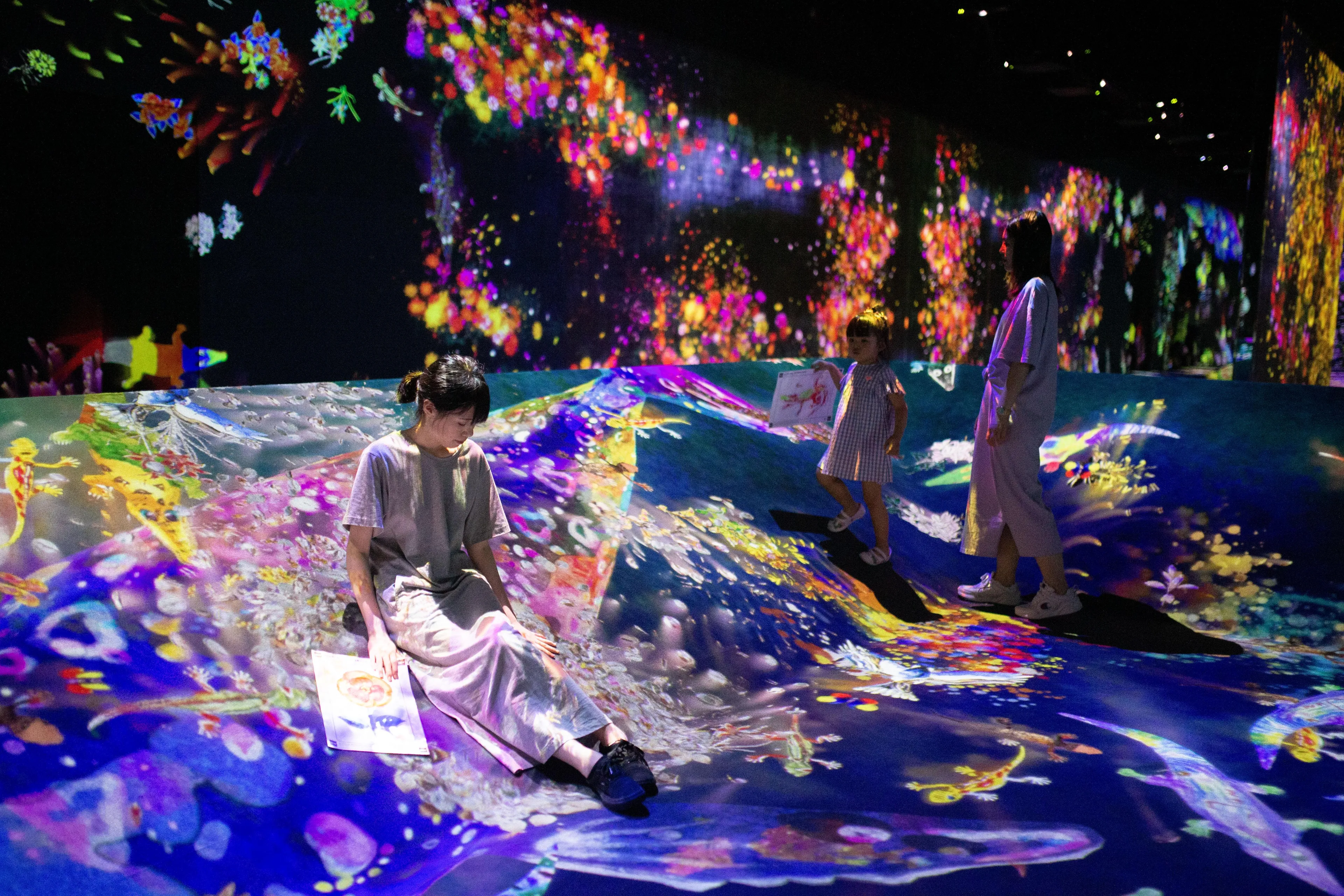 teamLab, 2016-, Interactive Digital Installation, Sound: Hideaki Takahashi