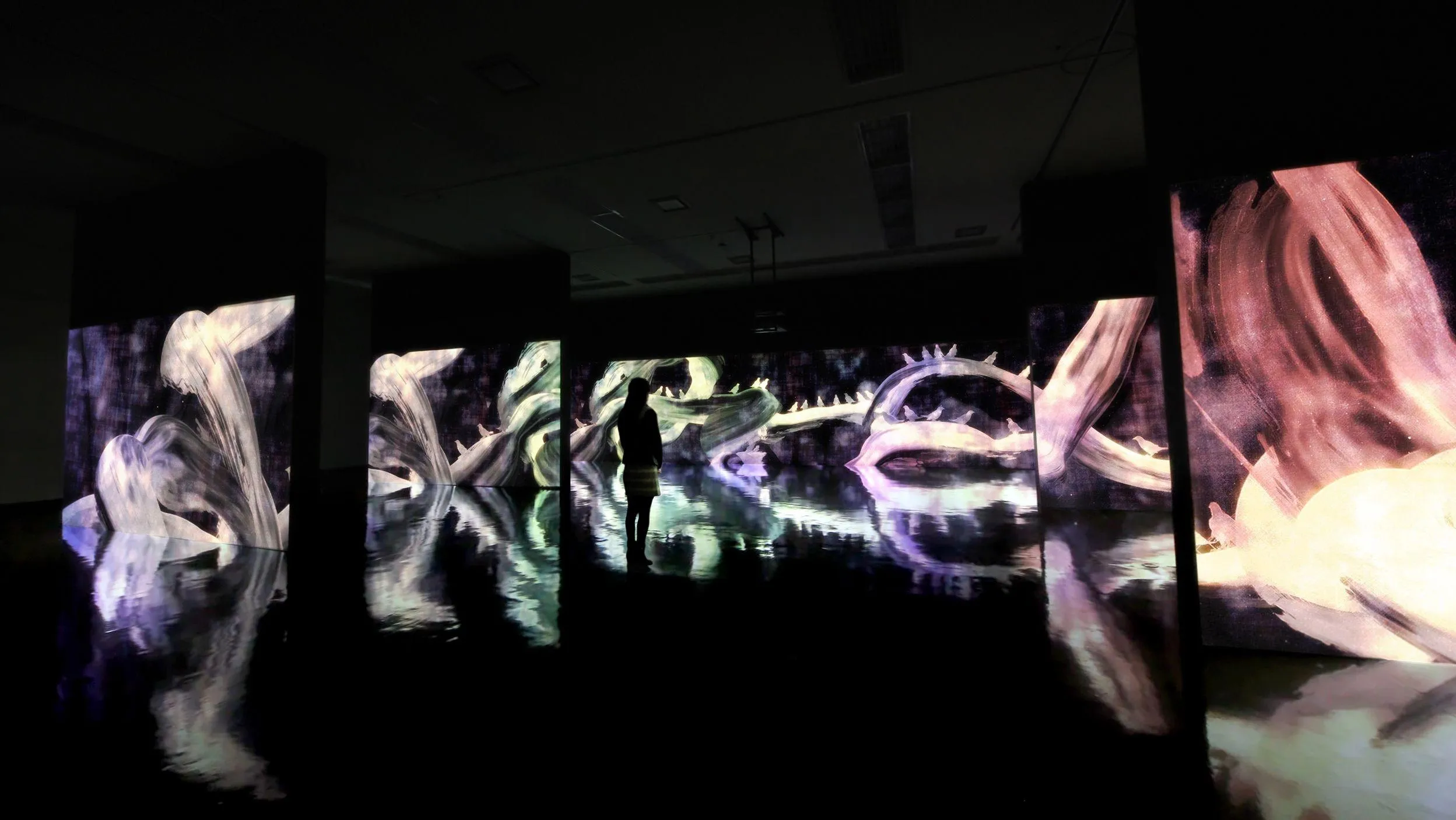 In this digital artwork, an homage to the Itano Circus, teamLab has recreated this distortion of space formerly used in 2-D animation in a 3-D space. This is an exploration of 1) what sort of logical structure of perception constitutes this distortion of space pioneered by Japan’s animators, and 2) the hypothesis that this is in line with the continuous tradition of Japanese spatial perception. By recreating this distortion in a 3-D space, teamLab widens the perspectival viewpoint. This work is also an experiment in visual experience, as it divides the viewer’s perspective while deploying divided perspective into 3-D space.