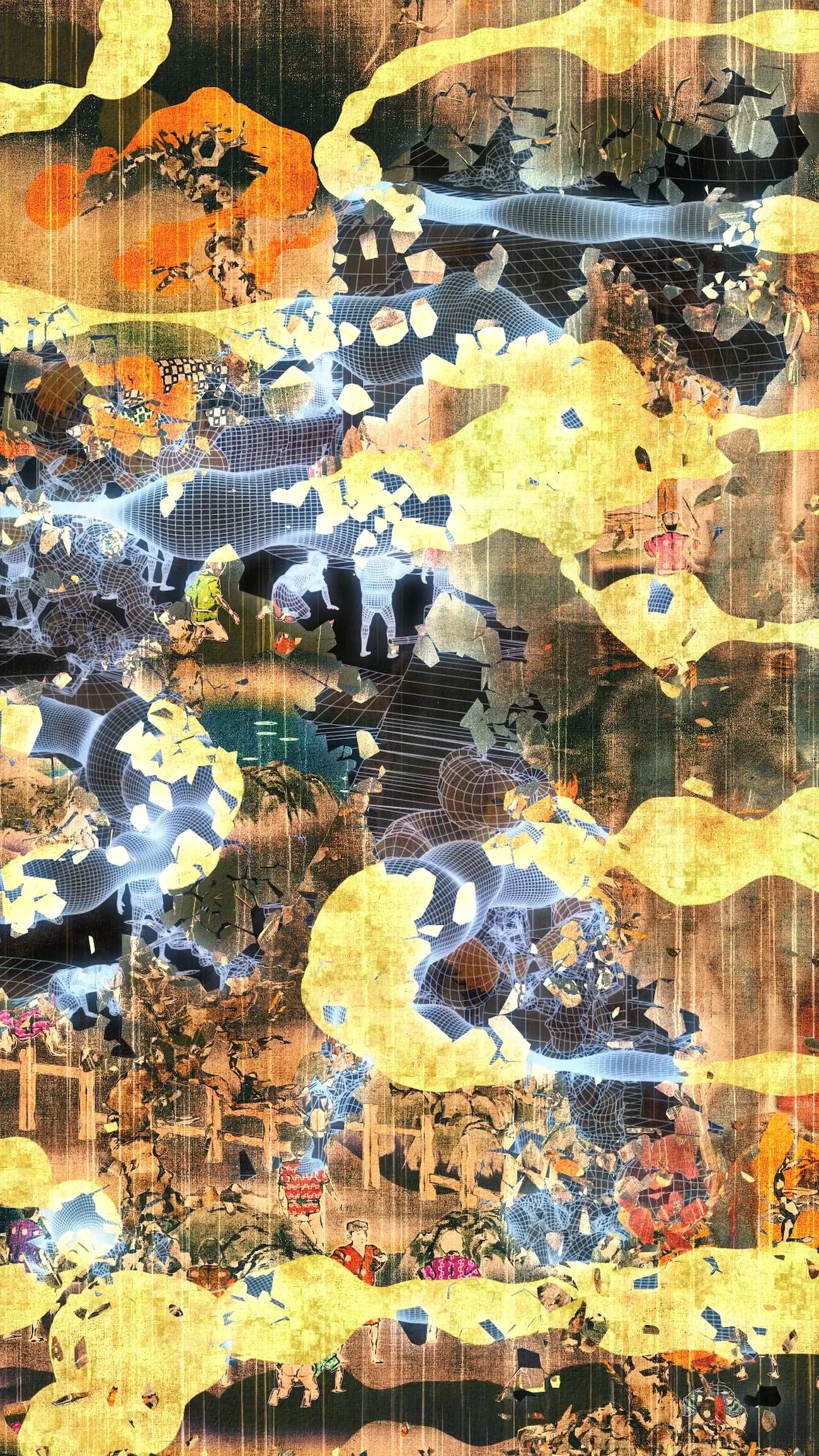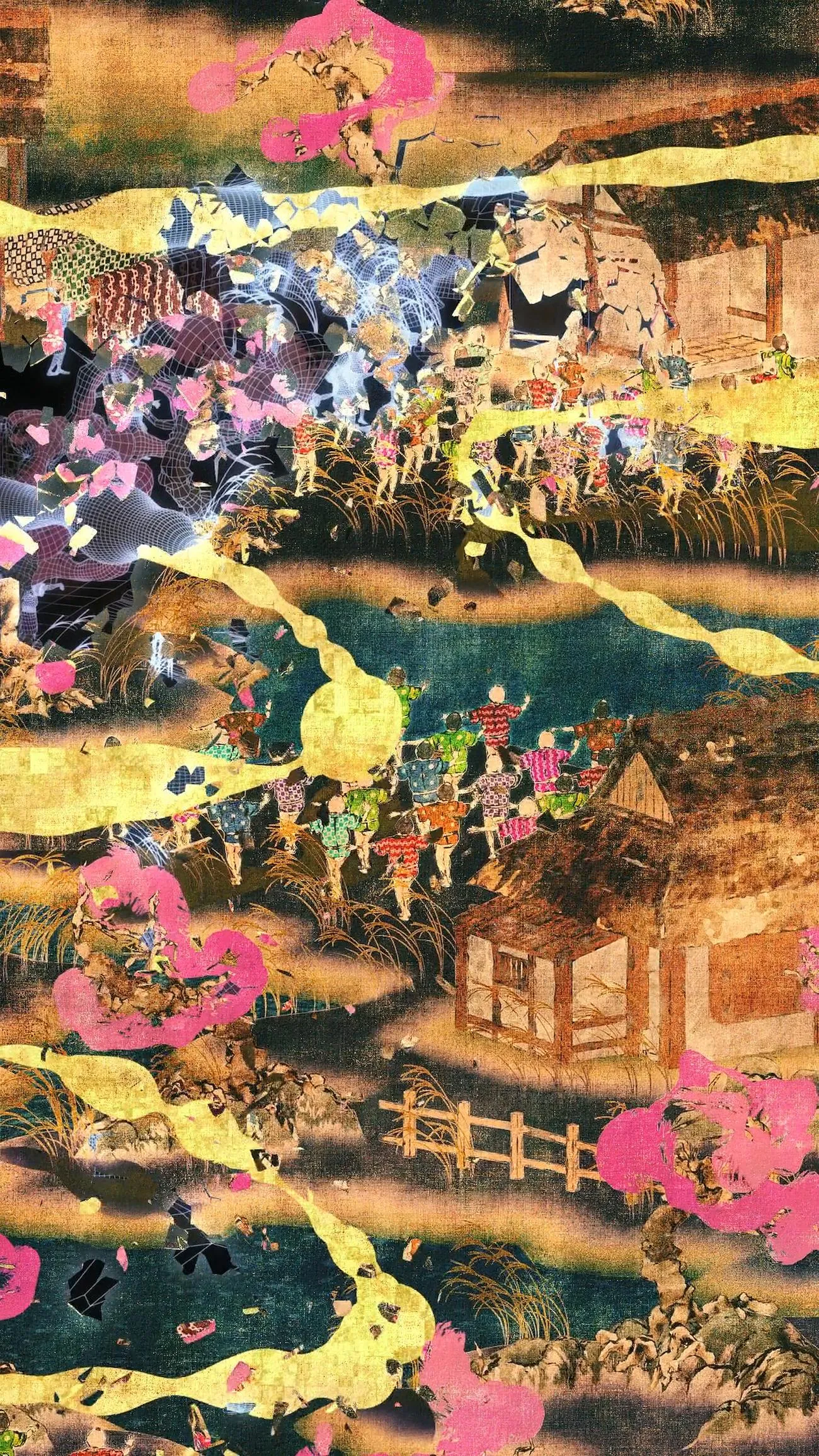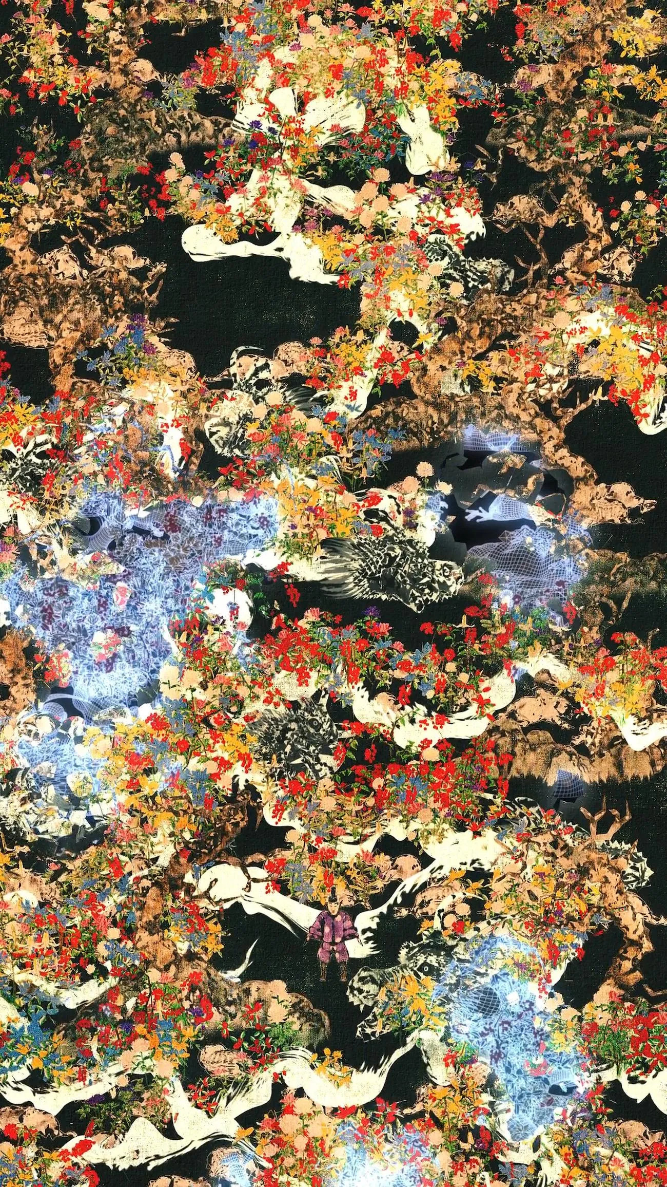 Created from 12 screens, this illustrated story features a theme of "the clash, cycle, and symbiosis between nature and culture.