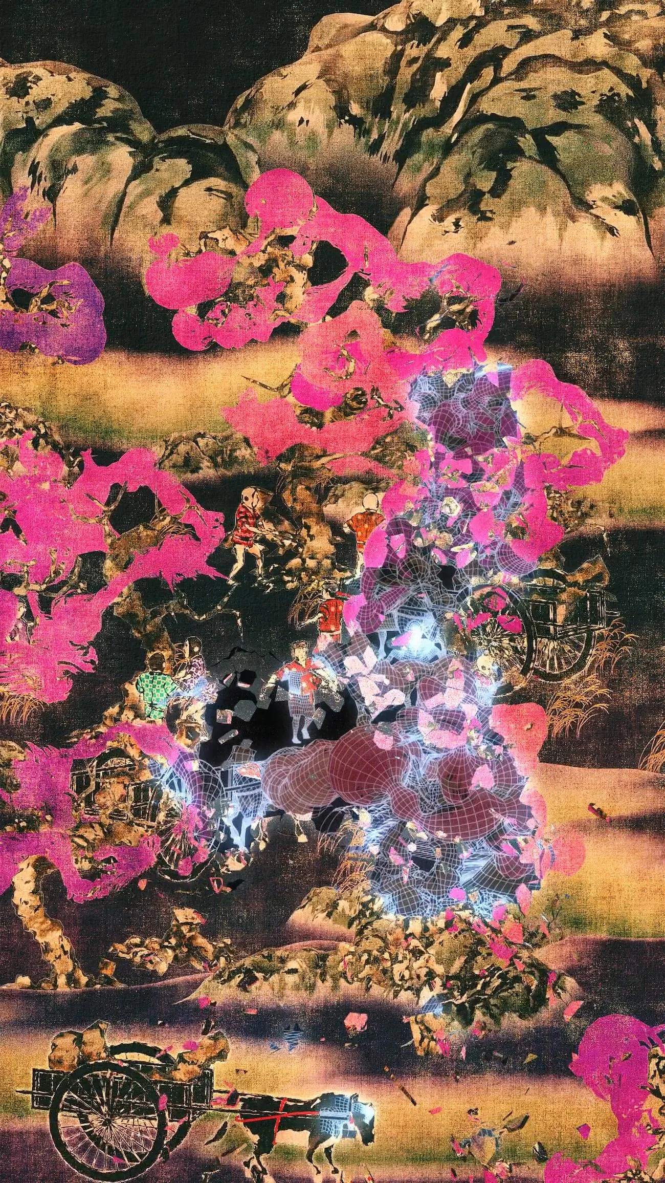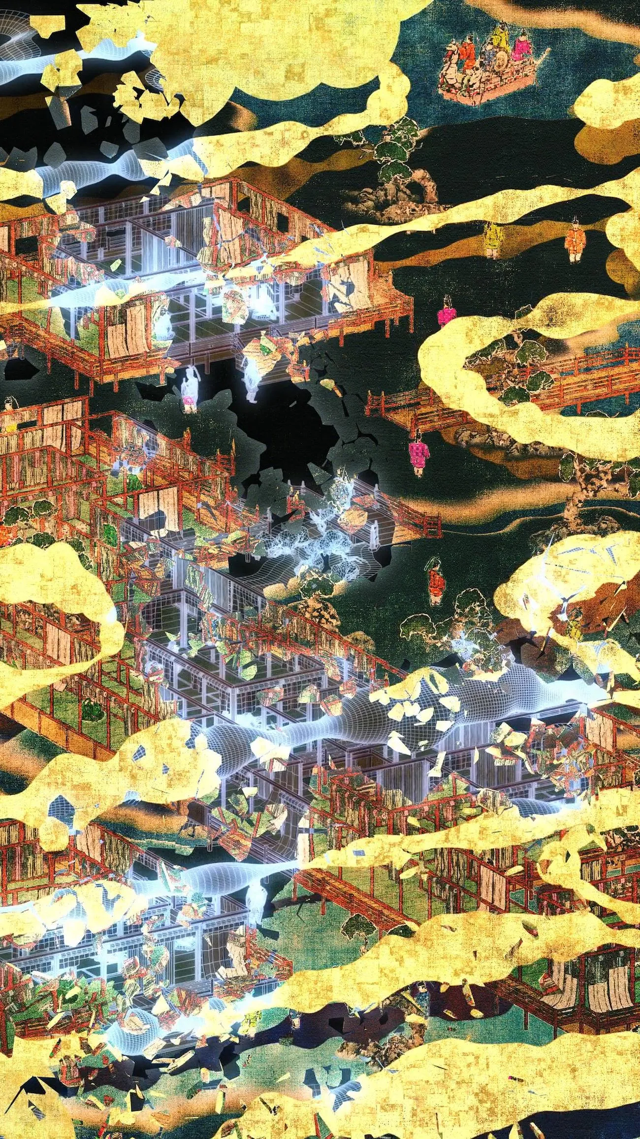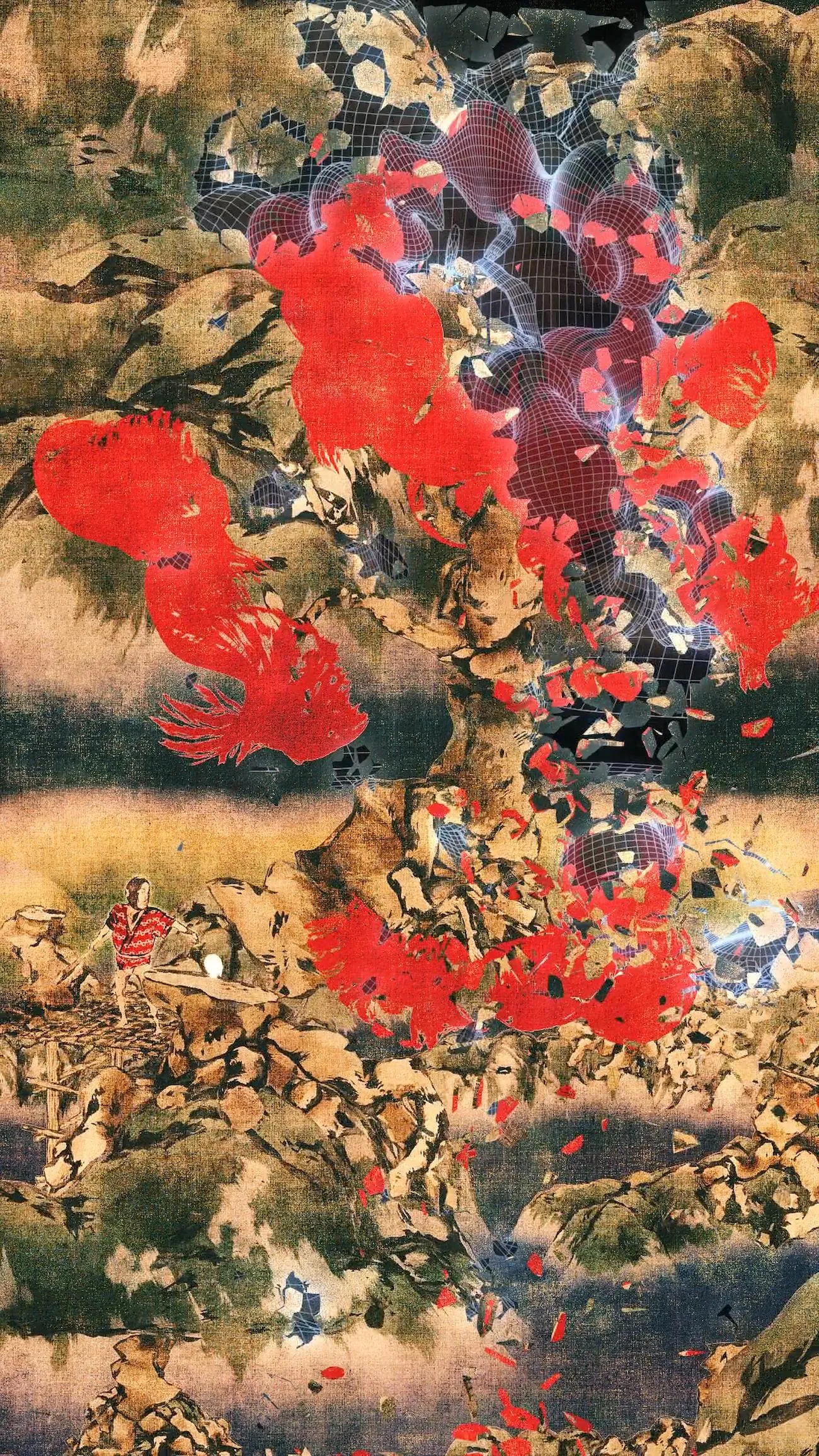 Created from 12 screens, this illustrated story features a theme of "the clash, cycle, and symbiosis between nature and culture.