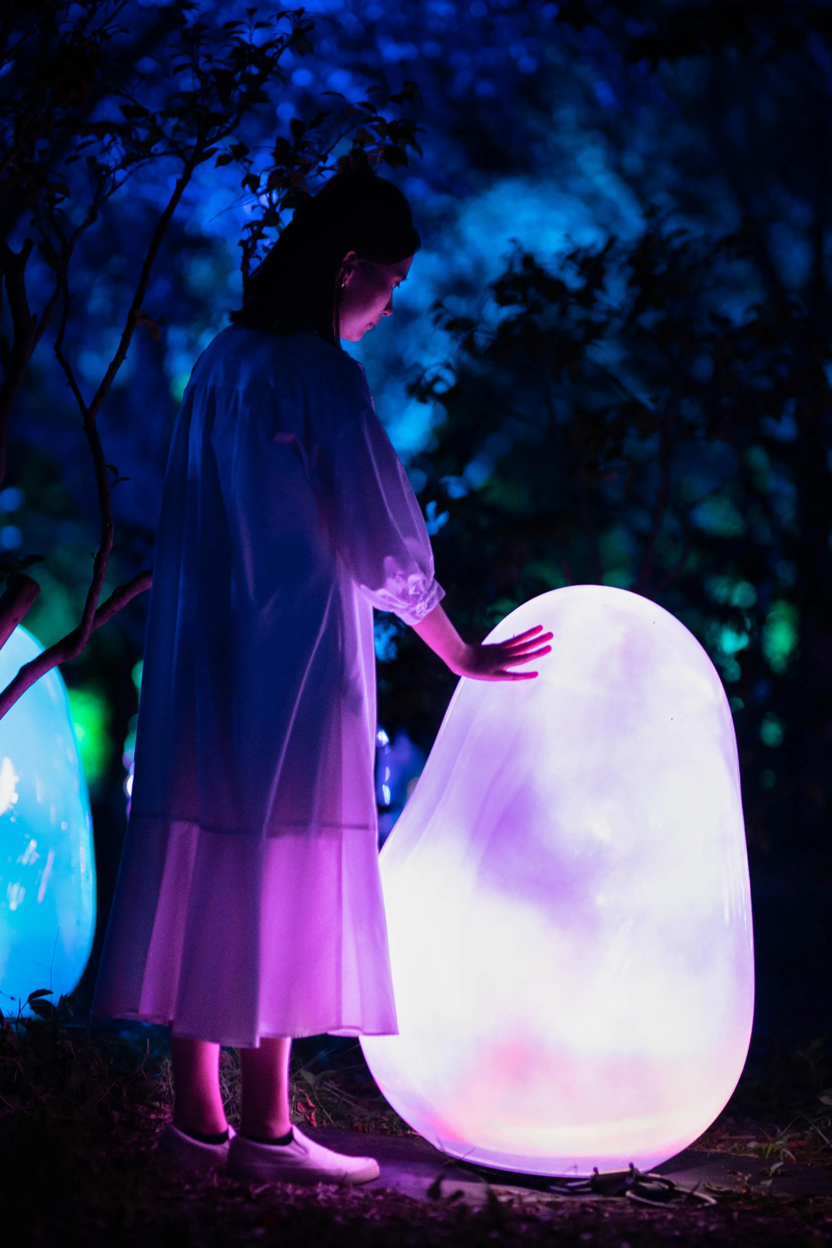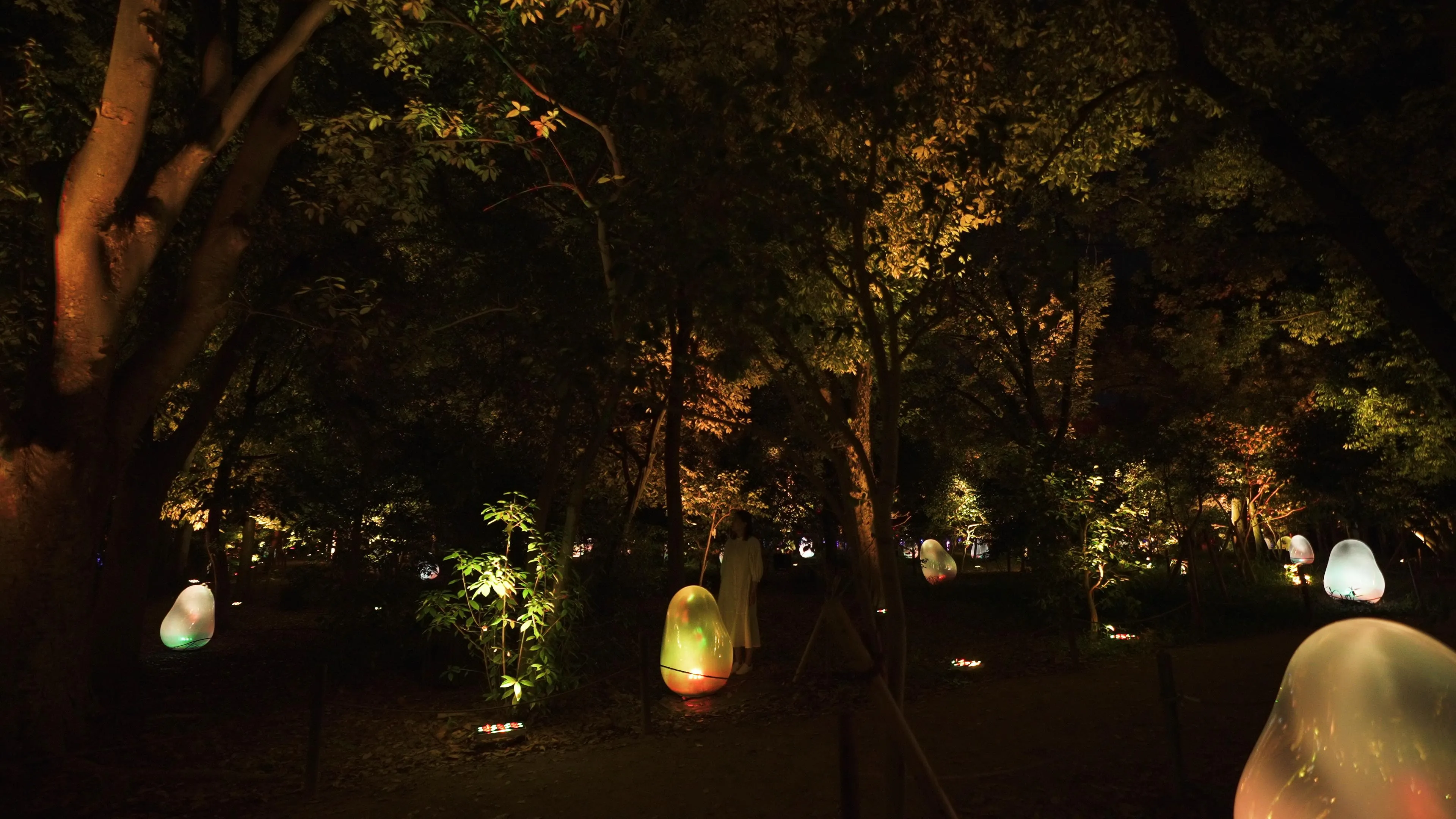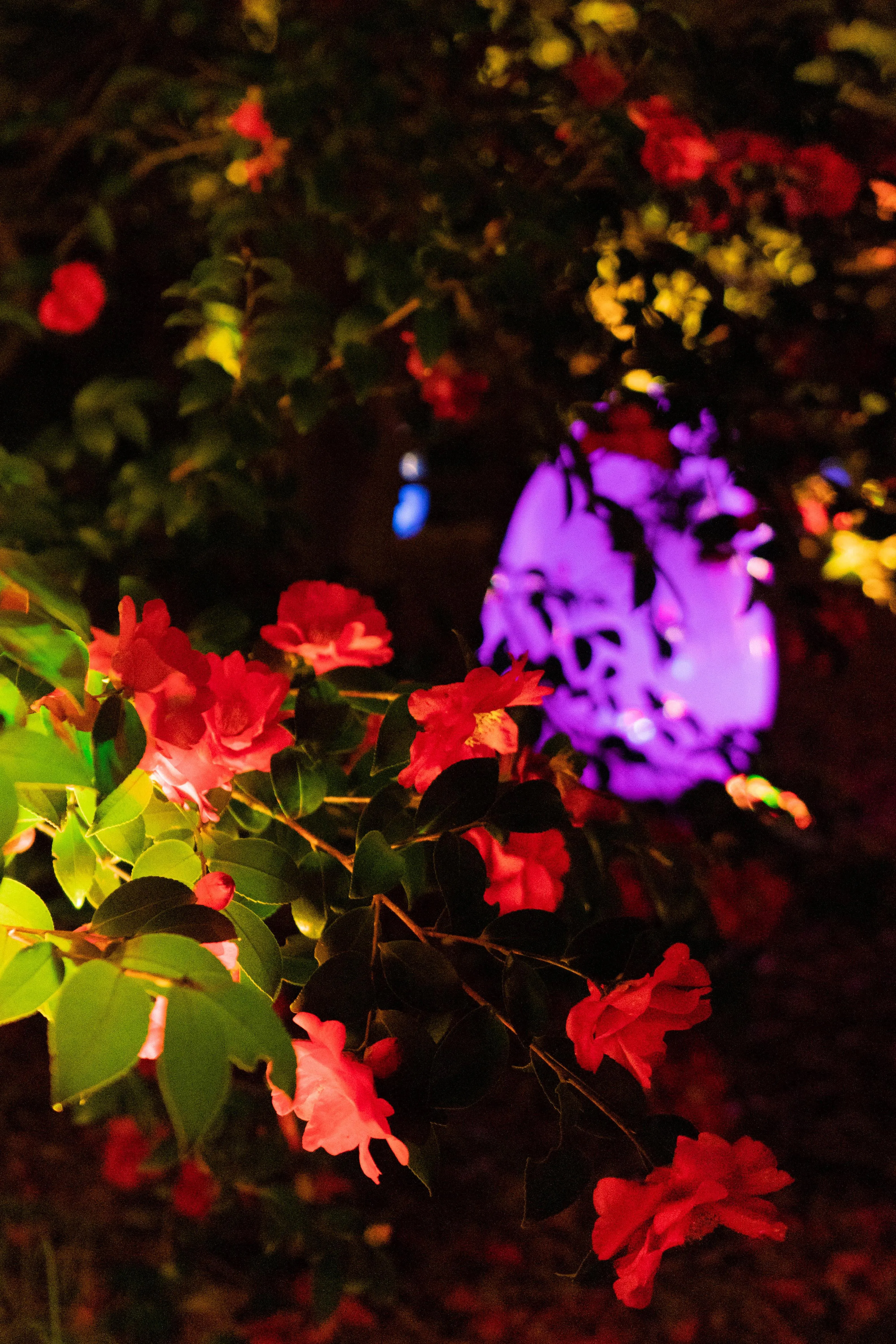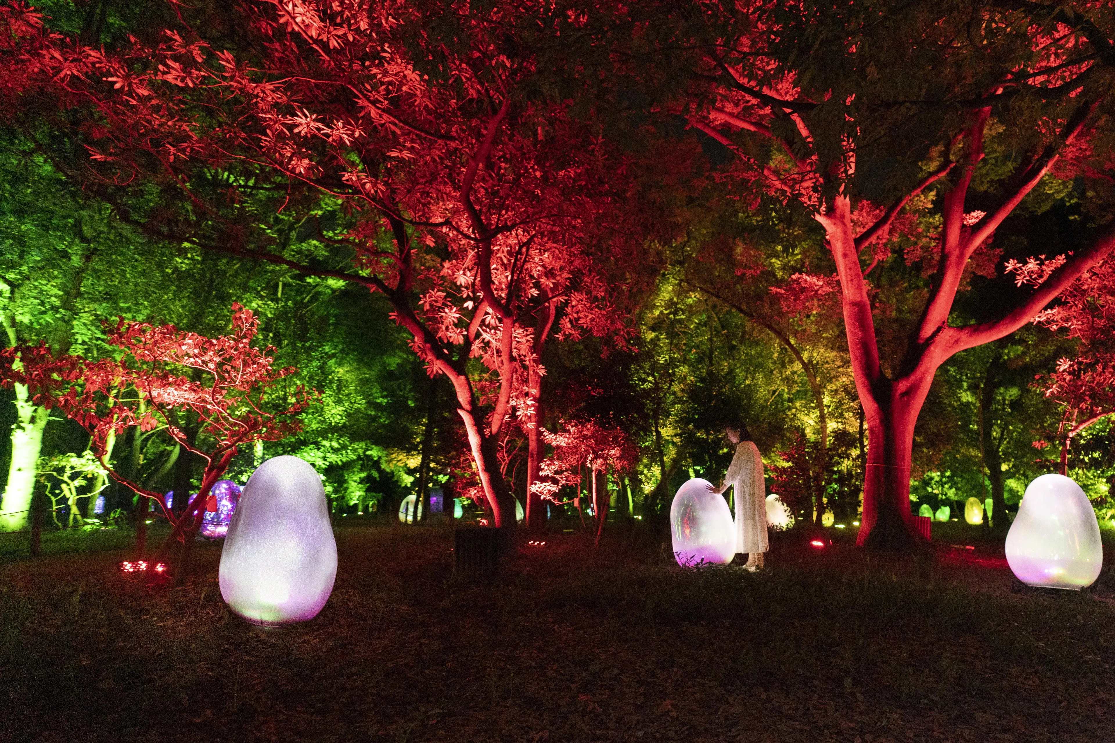 A camellia garden where the ovoids transform from day to night.