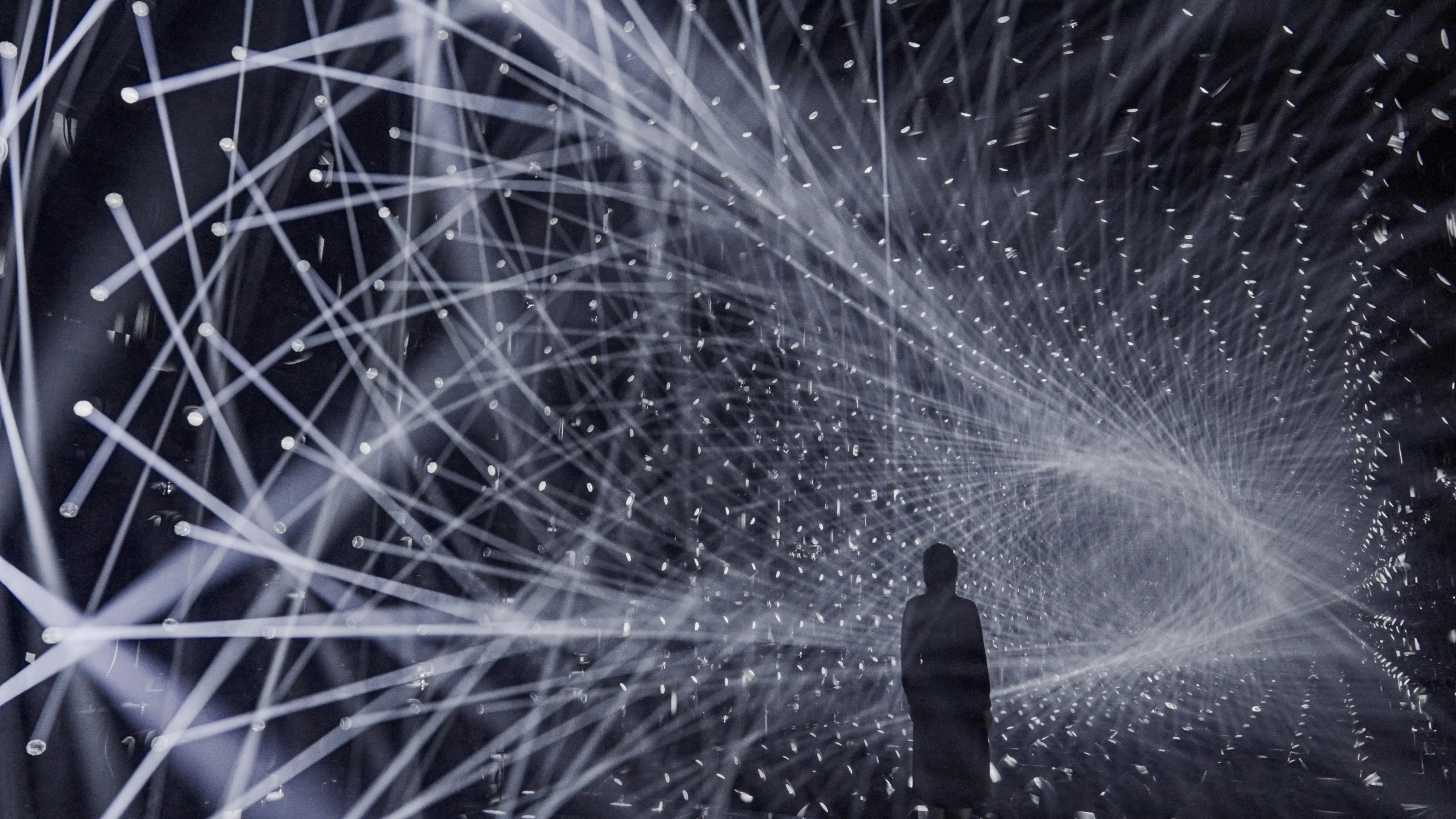 A sculpture made of ordered light that continues to flow outward.