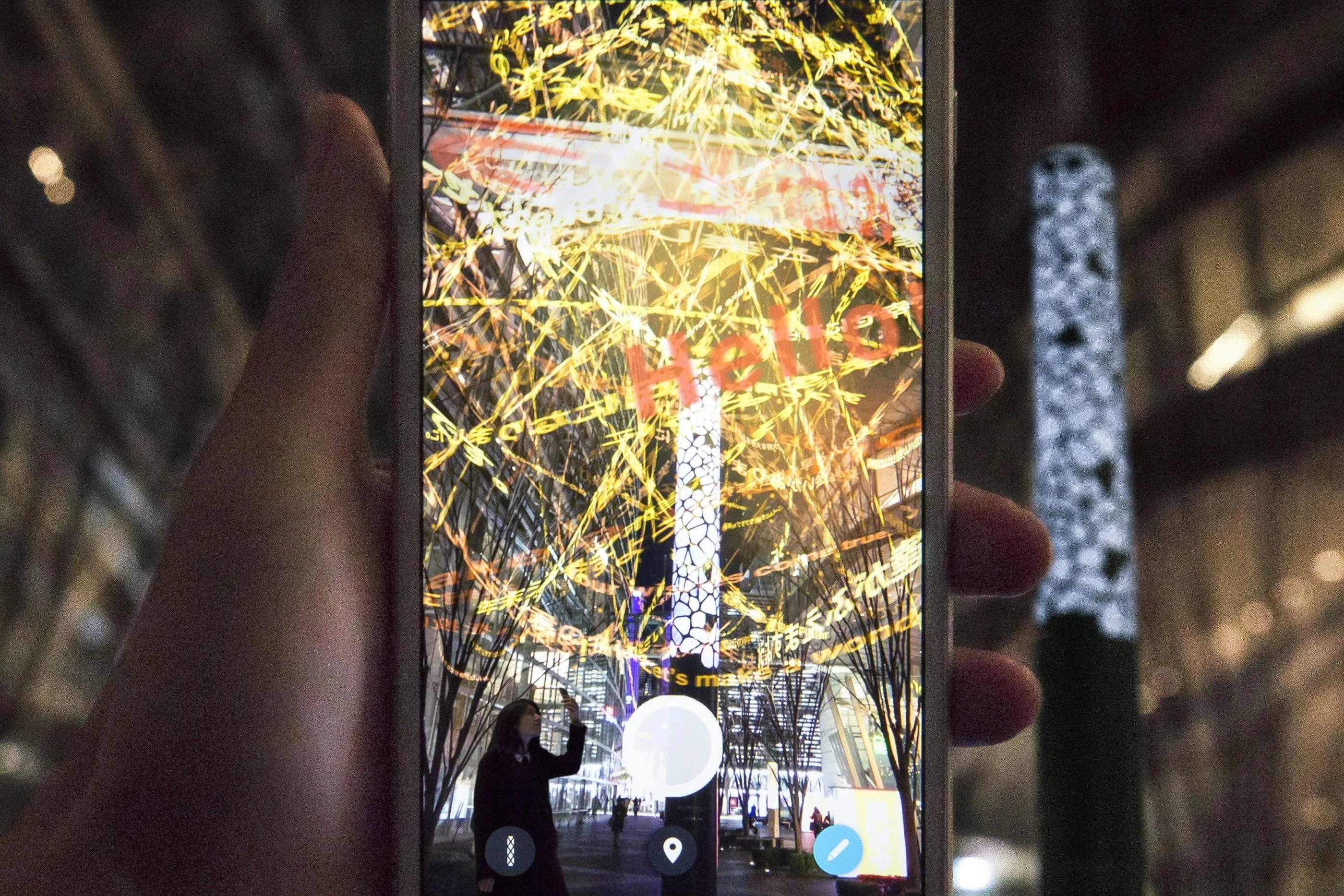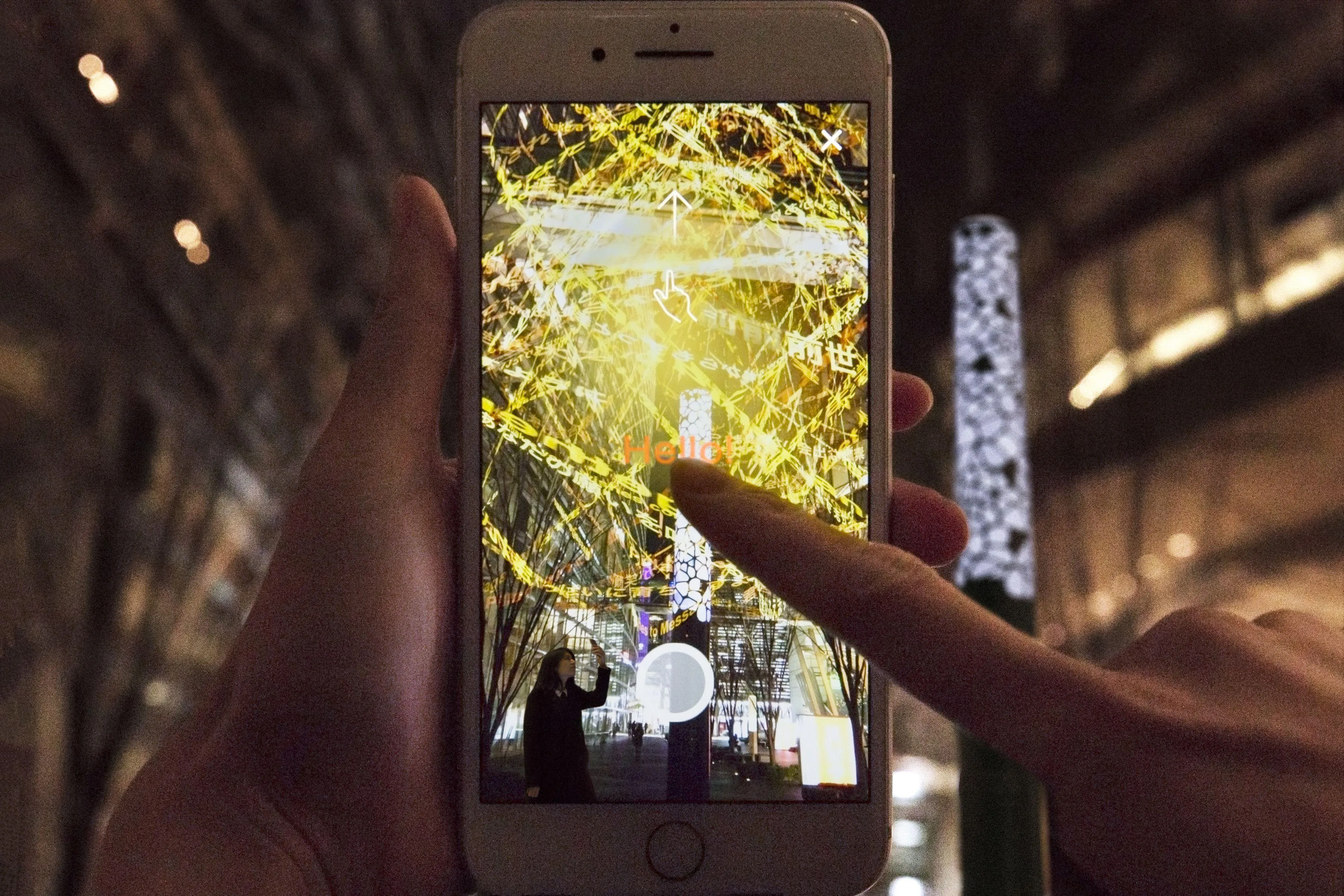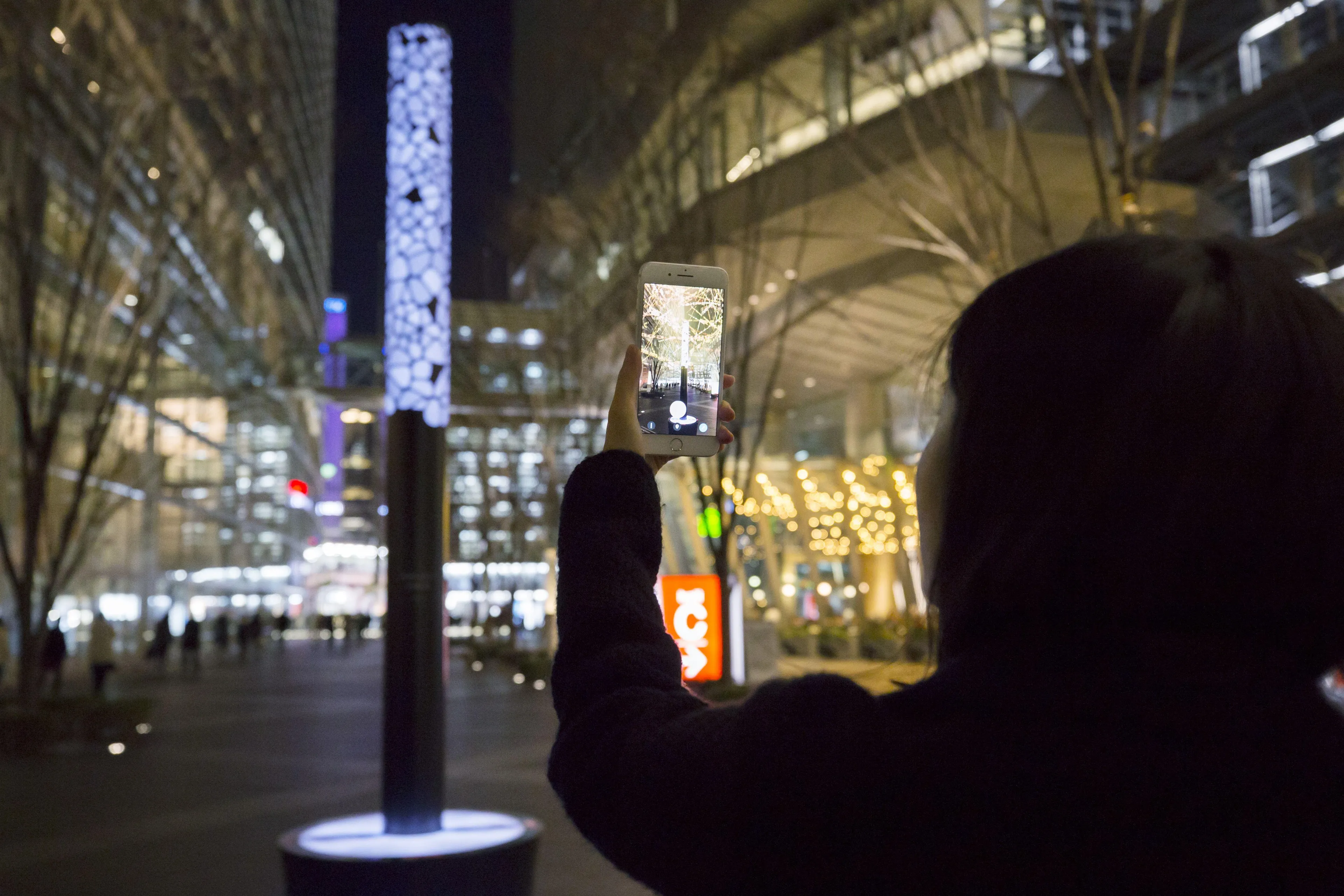 丸の内仲通りで12月16日、映画「君の名は。」とのコラボレーションによる参加型ARアプリを使ったインスタレーション「ひかりメッセージツリー」が始まった。主催は東京ミチテラス2016実行委員会とJR東日本企画。