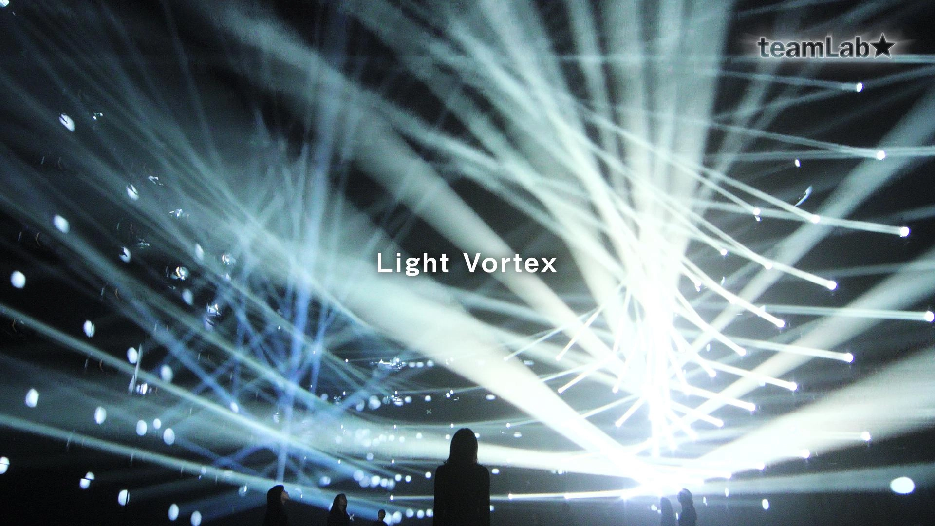 Light Sculpture - Line: 由光線集合體將空間重組並建構立體物。而這些空間與立體物都透過可用數位方式控制的光線集合體進行互動性的動作。由於空間與立體物都是由光線所構成的,所以觀賞者的身體能夠完全進入裡頭。