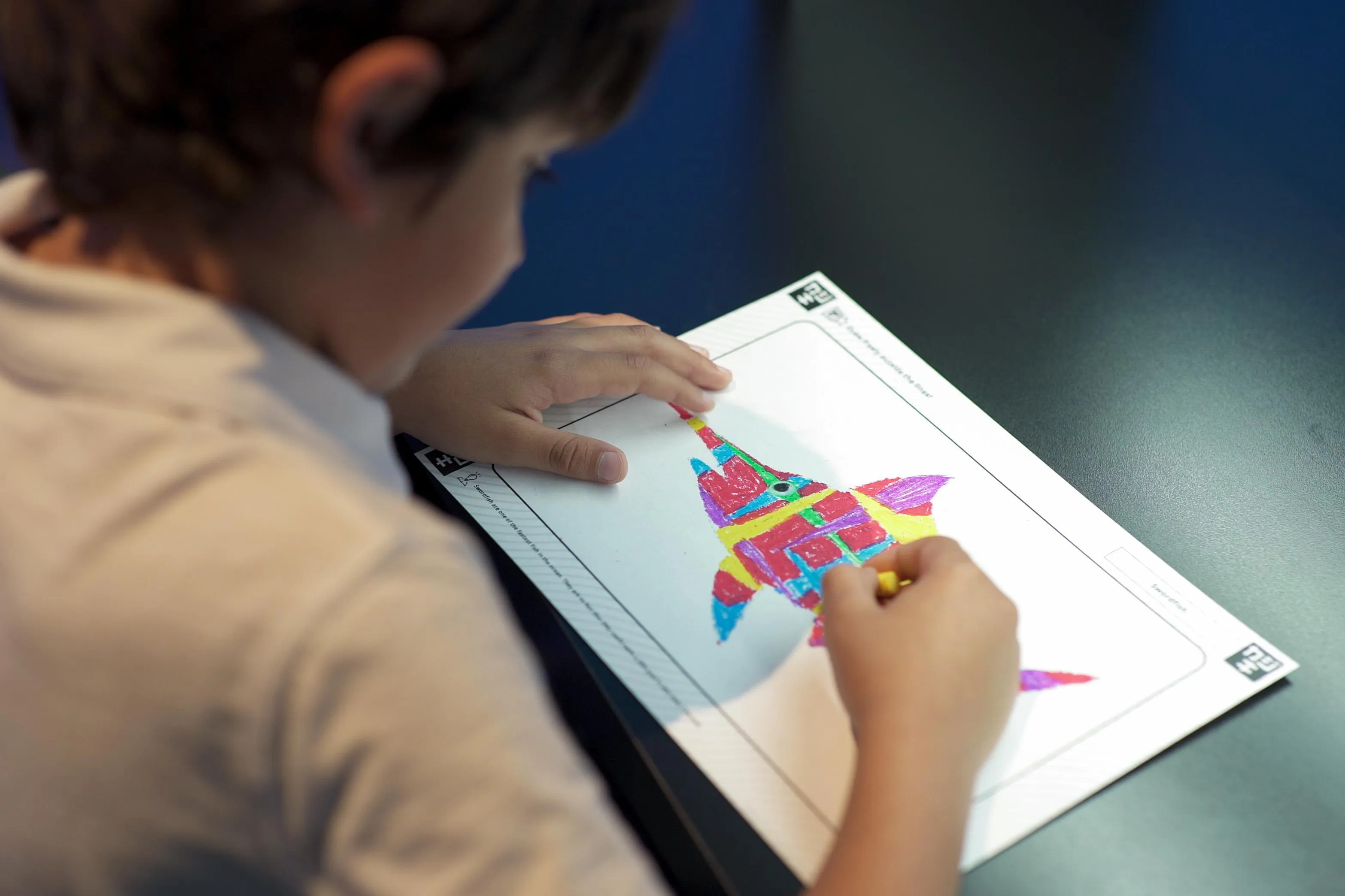 在紙上隨意描繪魚的圖案,隨之被描繪的圖案,會像被注入了生命一樣,遊入眼前的海洋裏。