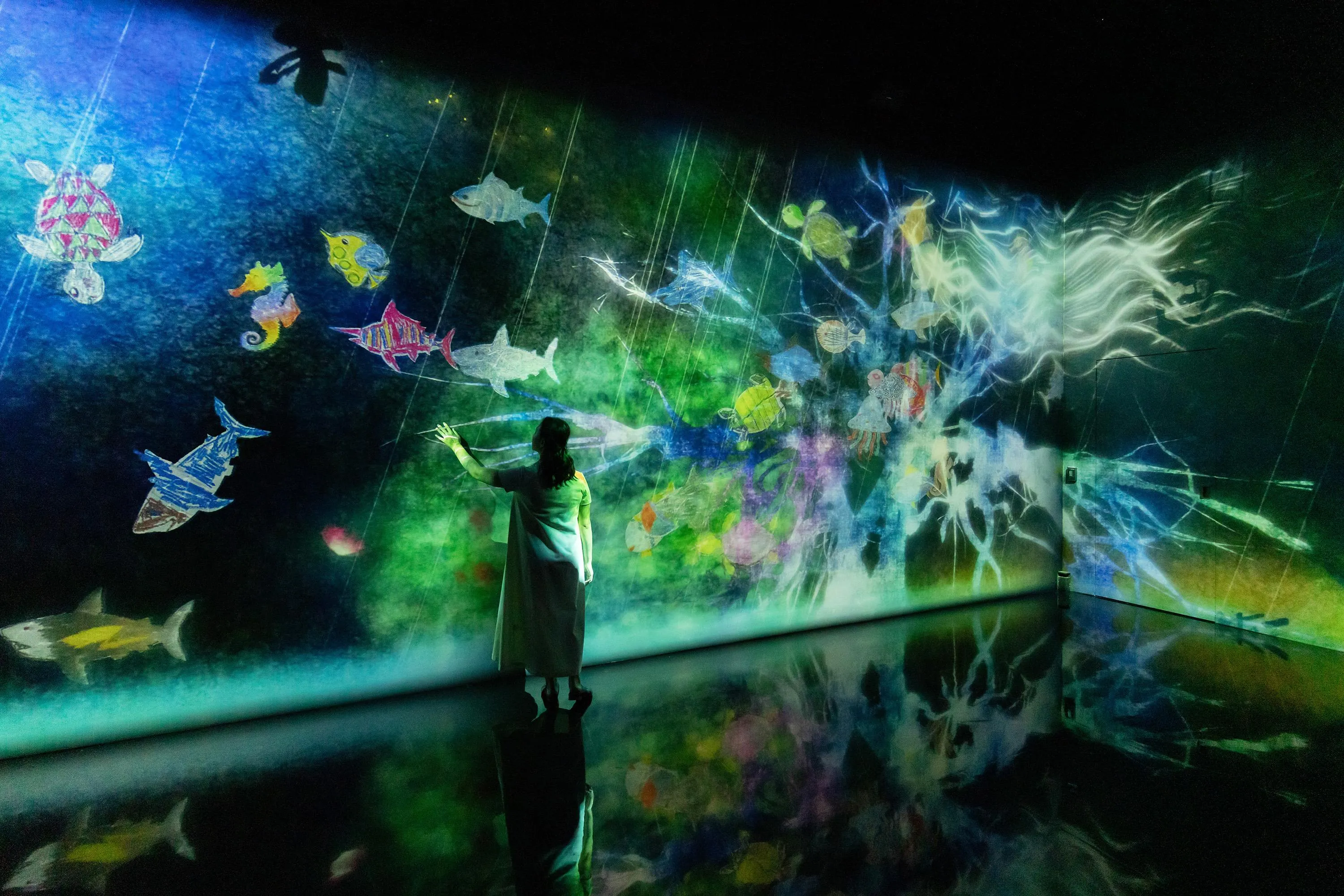 teamLab, 2020-, from the series Sketch Aquarium, 2013-, Interactive Installation, Sound: Hideaki Takahashi