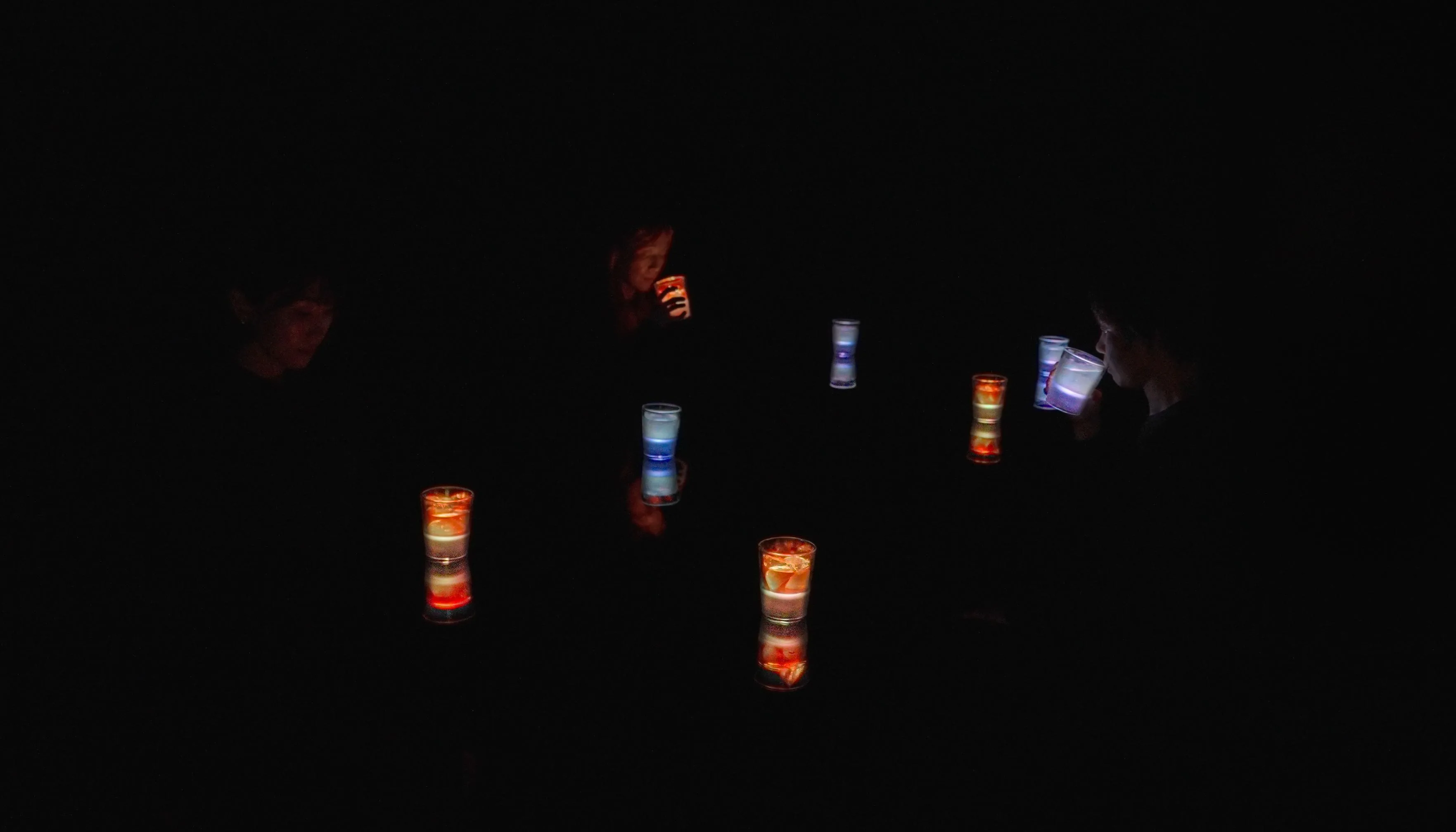 Through simple local interactions between Tea in Spontaneous Order and the nearby Tea in Spontaneous Order and Floating Lamps in Spontaneous Order, a time structure is created throughout the entire space of the artwork. Drink part of the order that has been formed.
